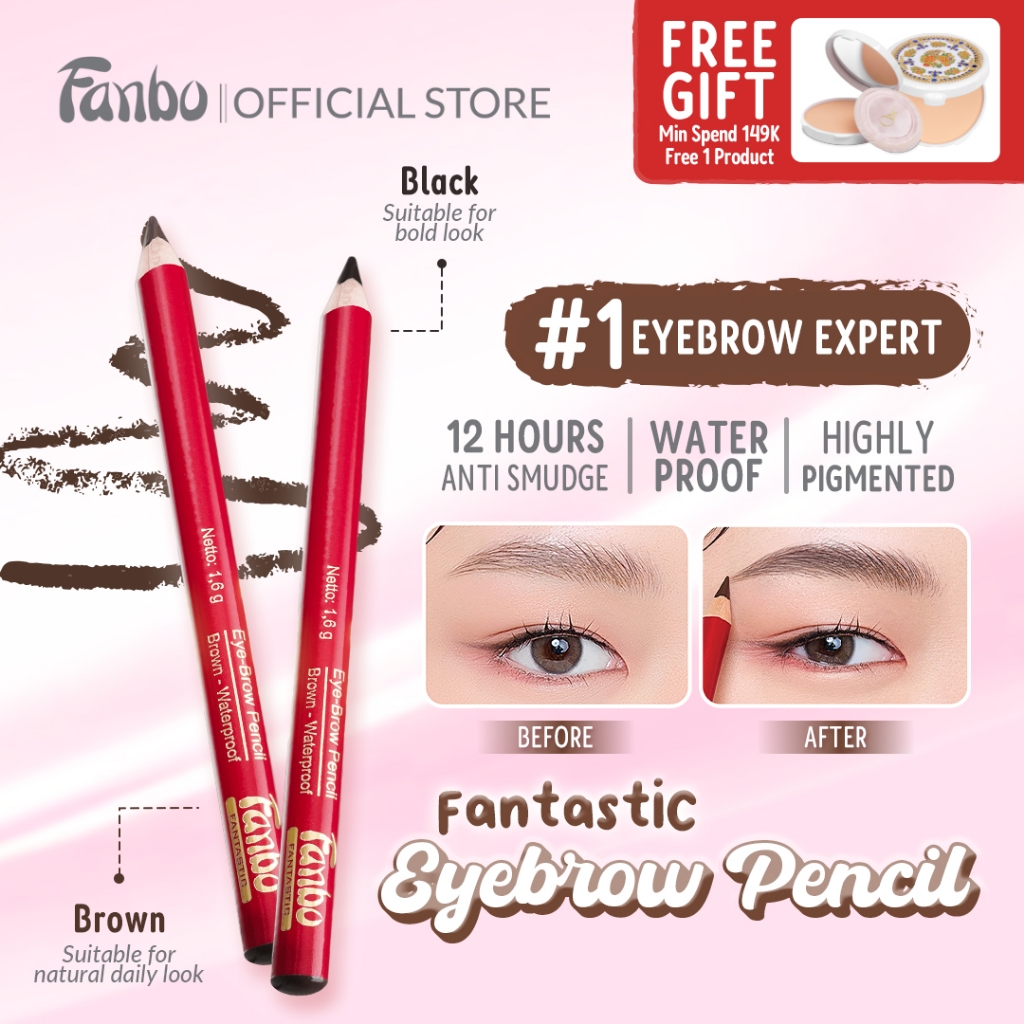 Fanbo Fantastic Eyebrow pencil - Pensil Alis - Waterproof - Tahan Lama - Mengandung Vit E & C sebagai Anti Oksidan yang merawat kesehatan alis mata - Tidak Luntur - Limitied Edition - warna Natural - semua jenis kulit - mempertegas bentuk alis