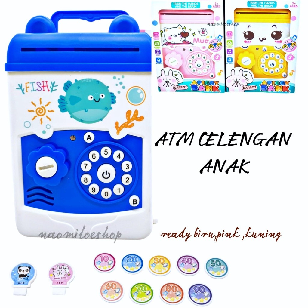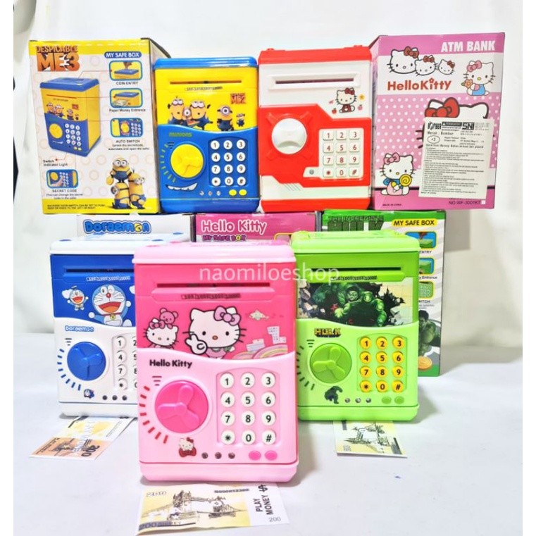 MAINAN CELENGAN ATM BRANKAS KARAKTER / TABUNGAN UANG BRANGKAS ATM ANAK hello kity celengan anak money