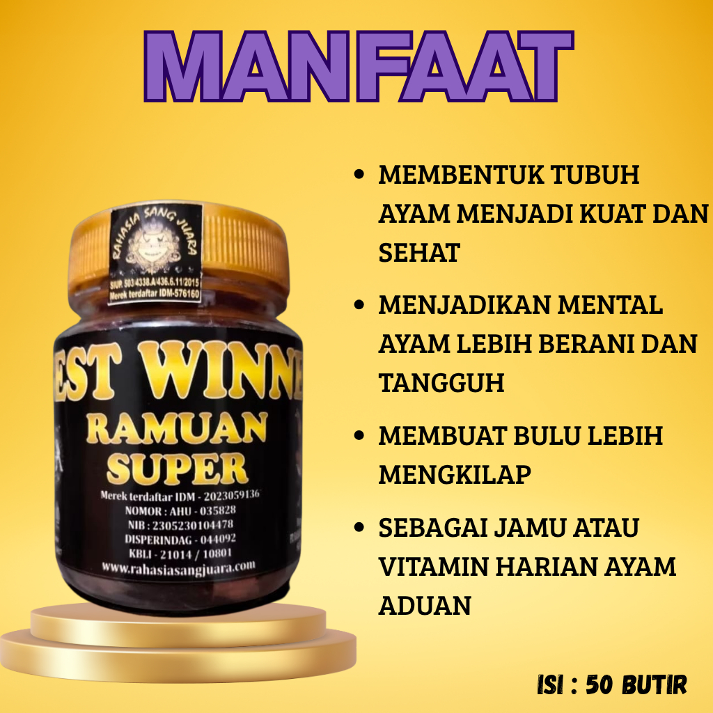 Best Winner Jamu Ayam Aduan Ramuan Super Mental Juara Isi 50 Butir
