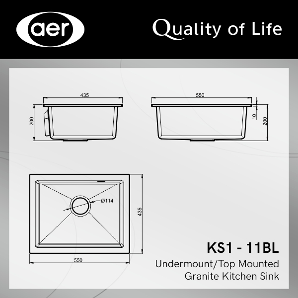 AER Granite Kitchen Sink - Bak Cuci Piring KS1-11BL