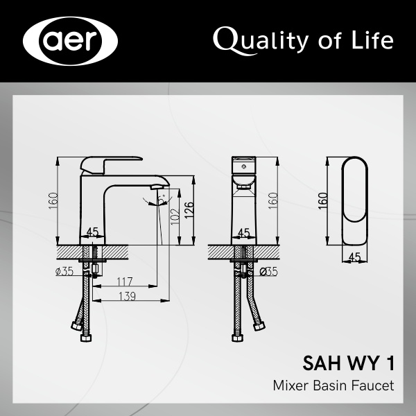 AER Kran Wastafel - Keran Air Panas Dingin Kuningan SAH WY1