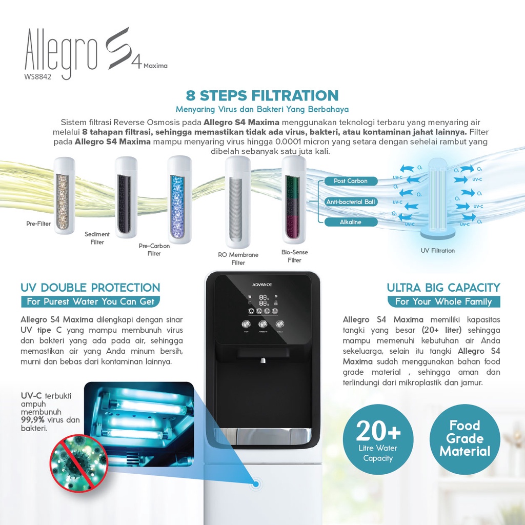 ADVANCE - Reverse Osmosis Allegro S4 Water Purifier (WS8842) - Dispenser Filter Air Minum Penyaring