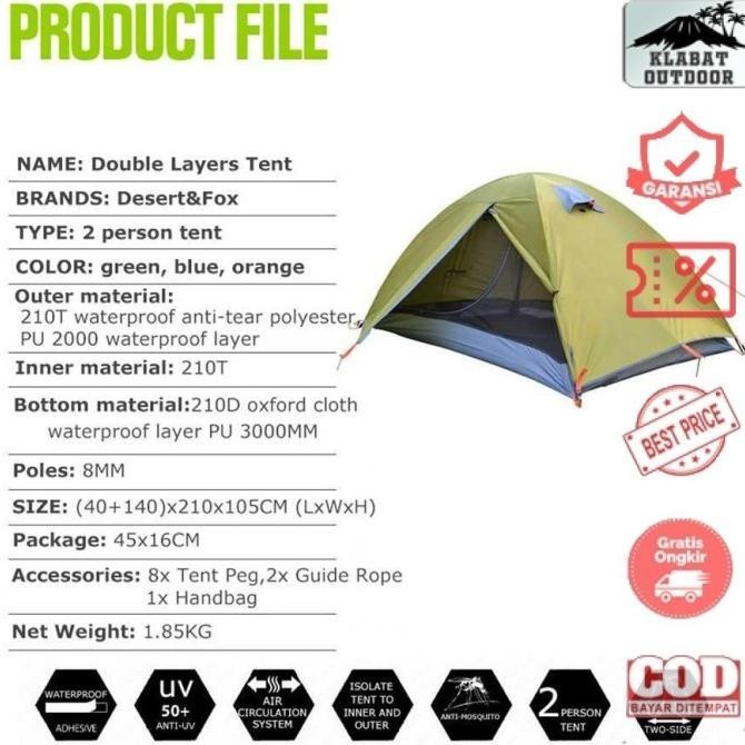 Tenda Camping Double Layer 2 Orang Kemping doble kapasitas 2 Orang