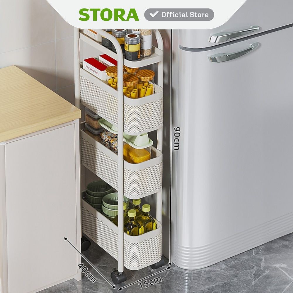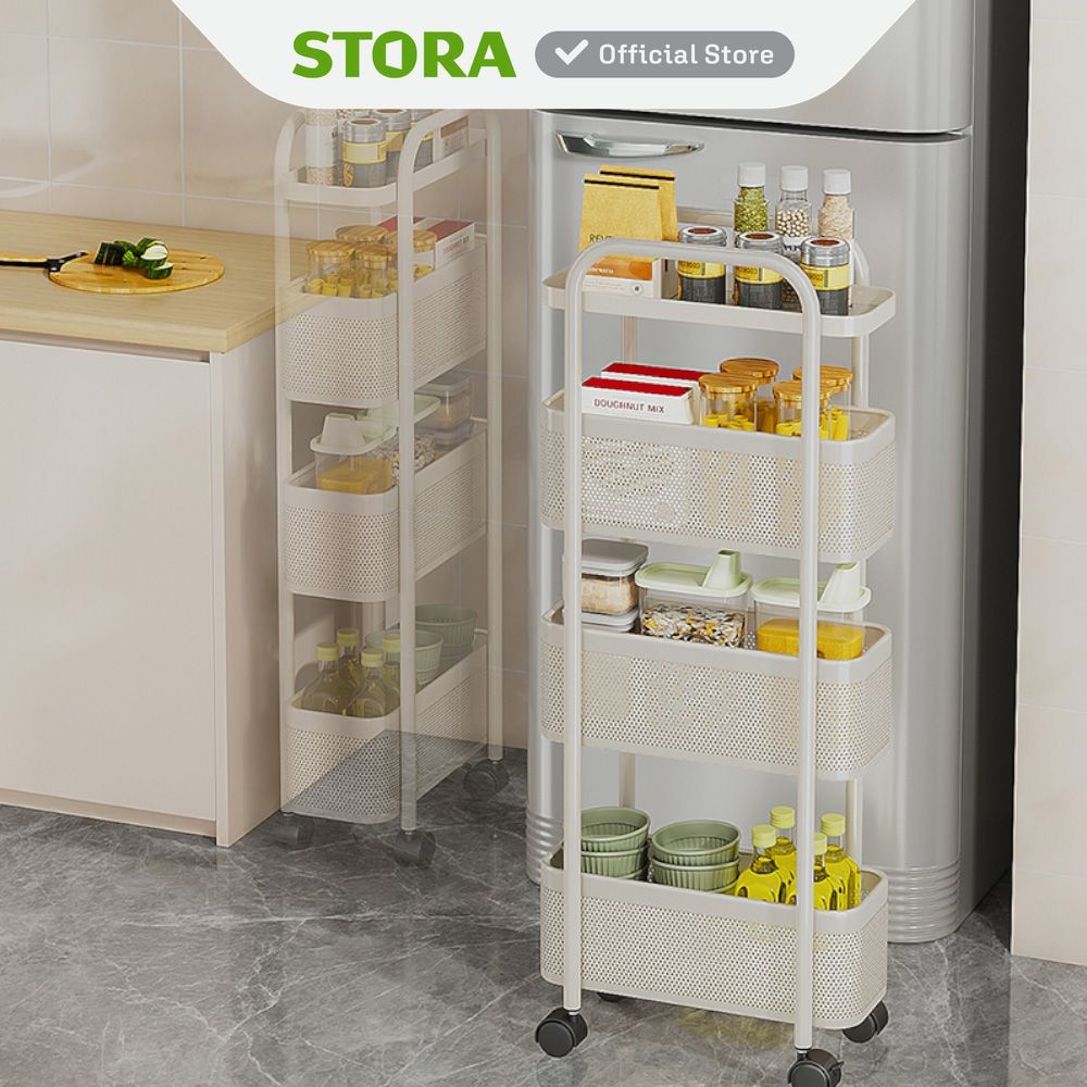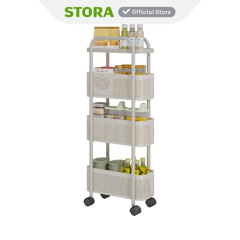 Stora Kassy Rak Troli 4 Tingkat Slim - Putih Tempat Penyimpanan Multifungsi Dengan Roda Storage Trolley Wheels Rack Perlengkapan Rumah Tangga