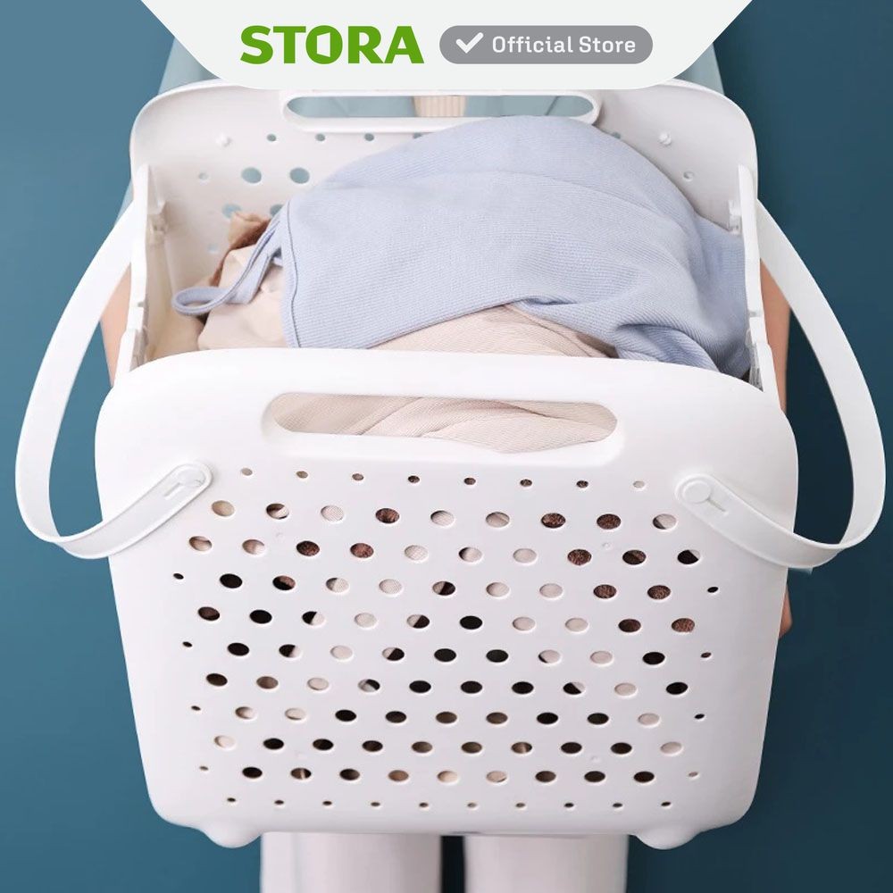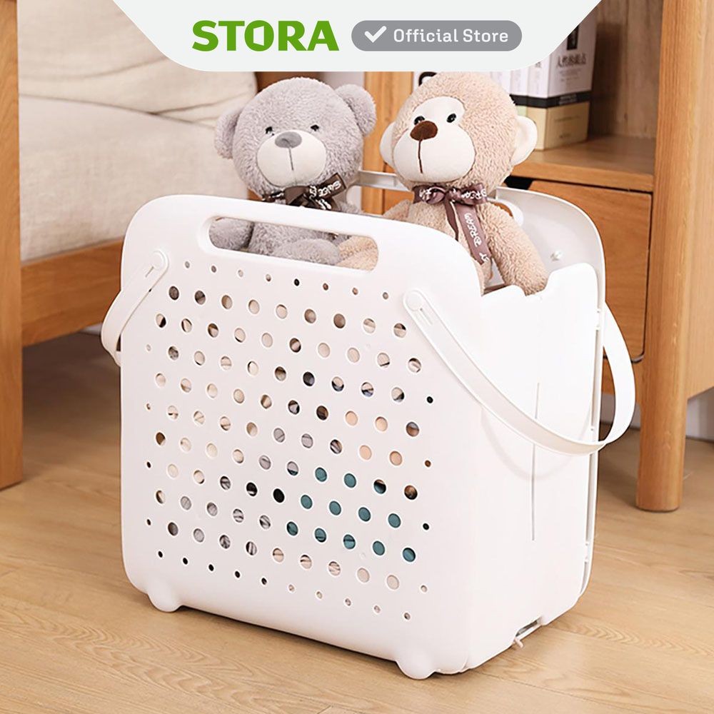 Stora Keranjang Laundry Lipat - Putih Tempat Baju Pakaian Kotor Wadah Cucian Foldable Laundry Basket Perlengkapan Rumah Tangga