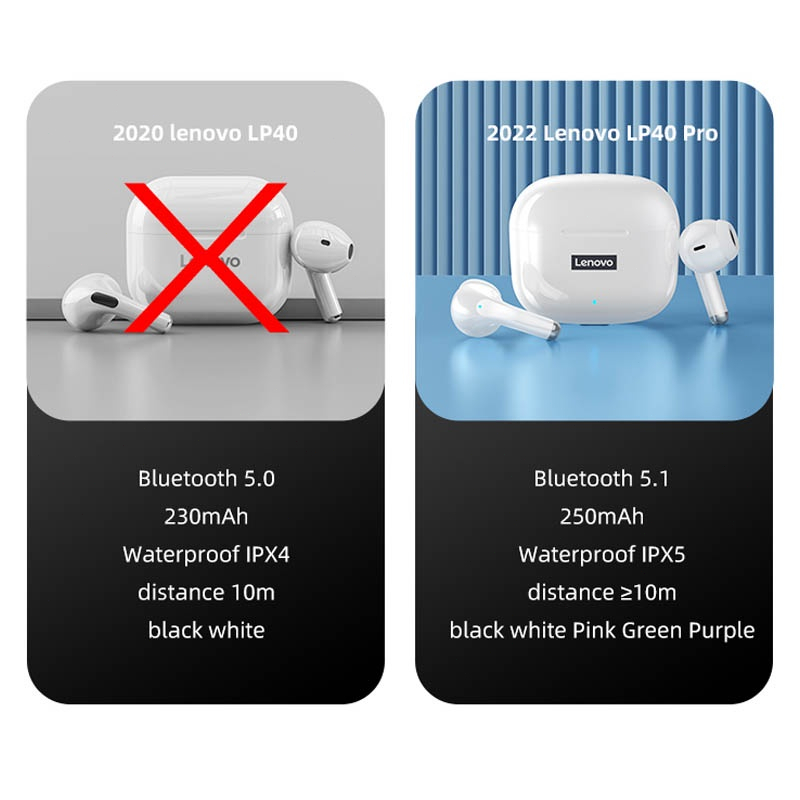 Lenovo LP40 Wireless Bluetooth Earphone Bluetooth V5.0 Touch Control TWS Earbuds With Mic