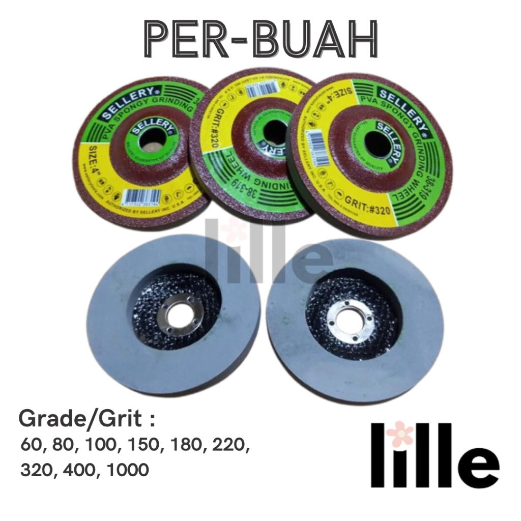 Grinding Wheel PVA Spongy Sellery 4 Inch Halus Sedang Kasar Batu Gerinda Poles Diameter 100 mm 10 cm Gurinda Spons Penghalus Pemoles Kaca Marmer Sponge Spongi Grade Grit 60 80 100 150 180 220 320 400 1000