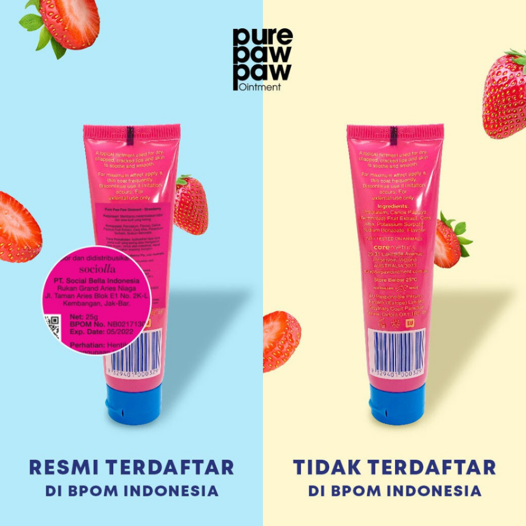 PURE PAW PAW Ointment 25 gr (Original, Strawberry, Passion Fruit, Grape, Watemelon) - Krim Gel Salep Multifungsi ( Lip Balm, Ruam Popok ) - Body Care