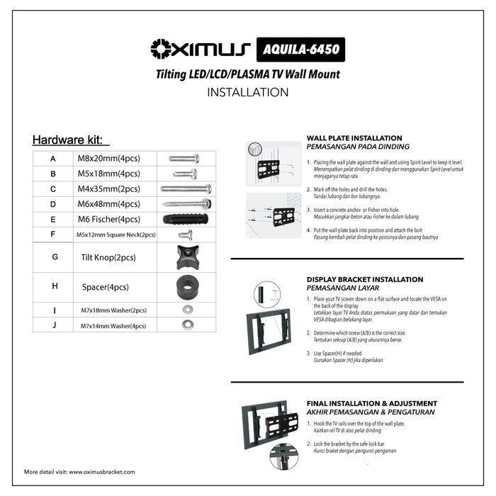 BRACKET TV Tilt LCD LED TV 32" - 75" OXIMUS AQUILA 6450