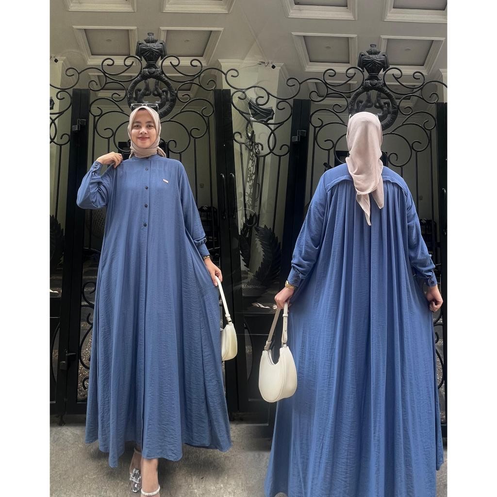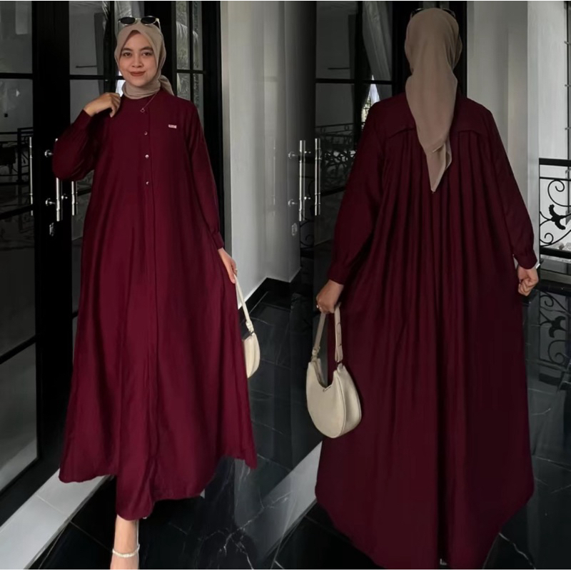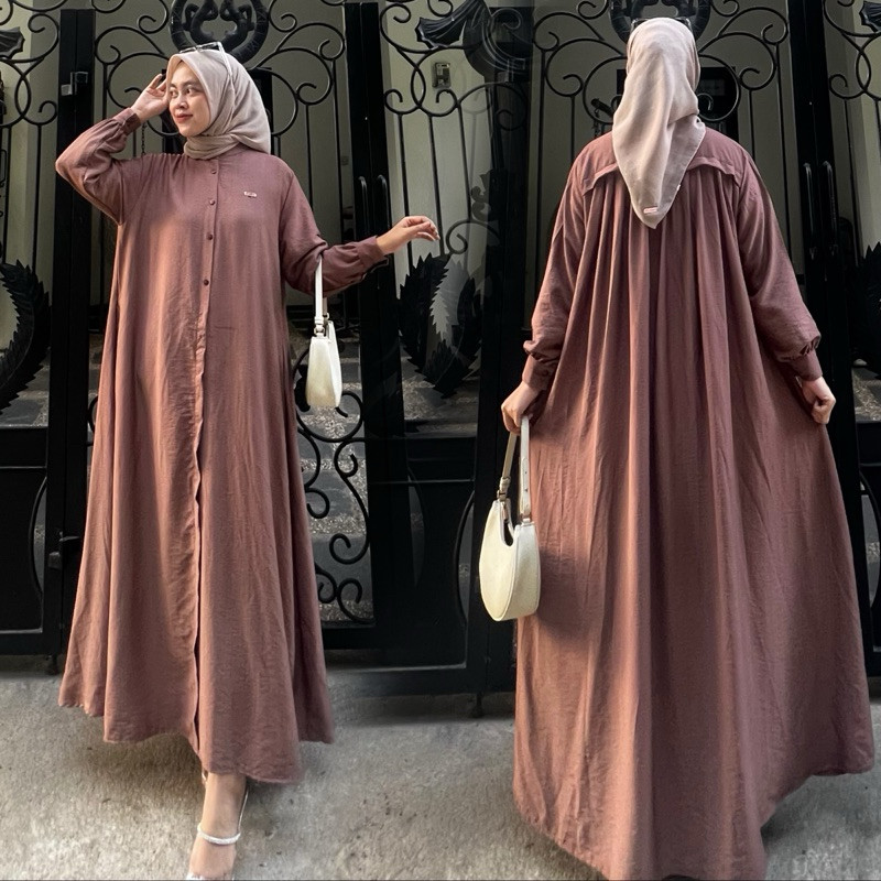 Vanilla dress gamis polo linen rempel belakang polos gamis lebaran 2025 terbaru
