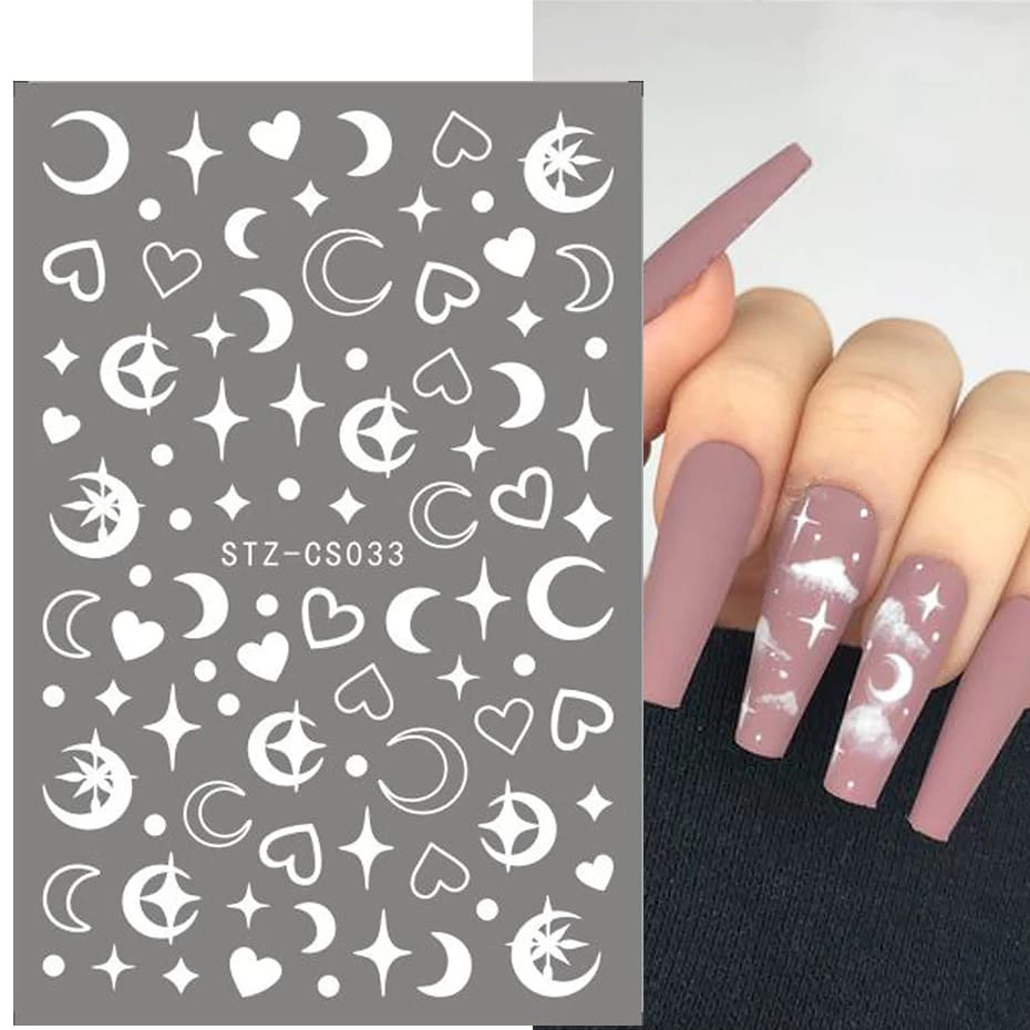 STZ BULAN BINTANG STIKER KUKU anak Dewasa Nail Art motif Bulan Bintang emas silver PUTIH AWAN
