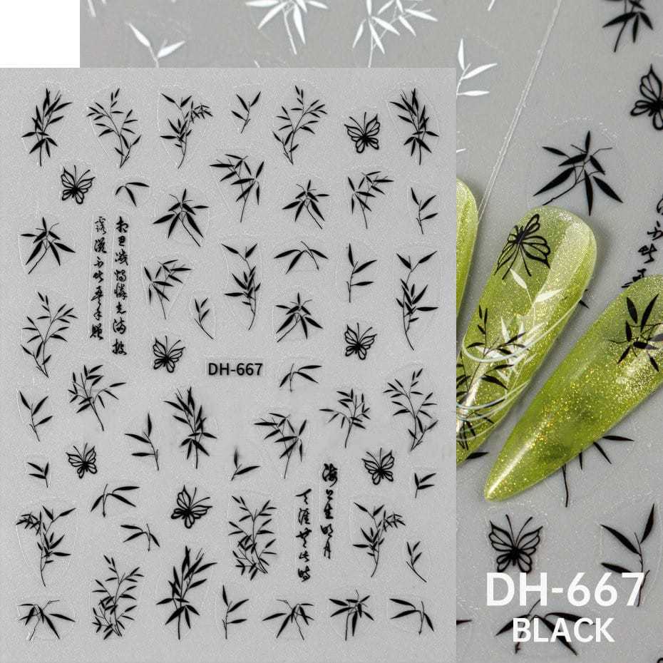 BAMBU DH STIKER KUKU Nail Art motif Daun BAMBU KUPU CINA MANDARIN