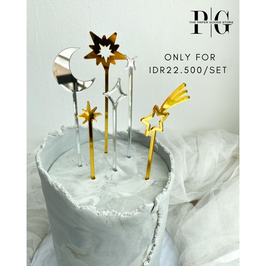 "Starry Night" Cake Topper Set 6pcs Tusukan Hiasan Kue