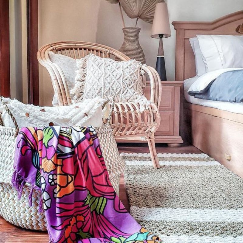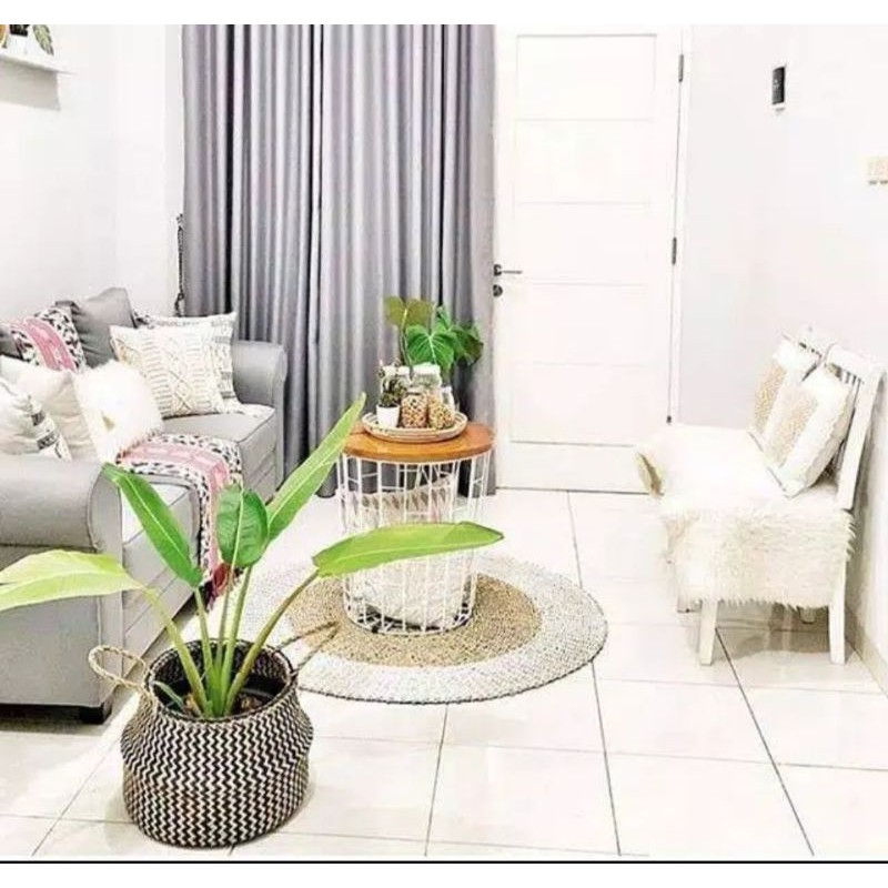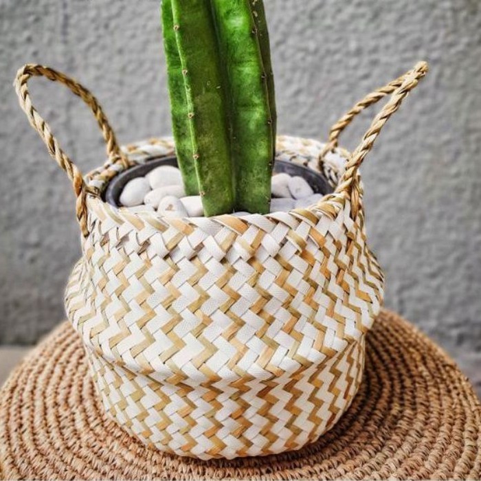 Belly Cover Pot Purun Natural/Motif/White Chevron