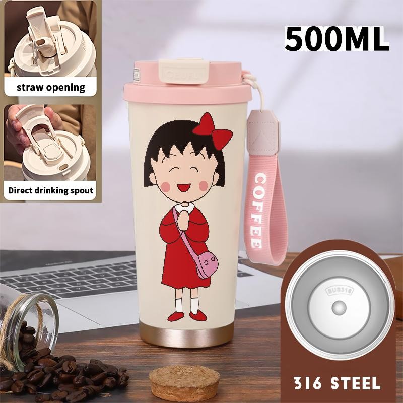 Tumbler Aesthetic Chibi Maruko Chan Botol Minum Stainless Steel Tumblr CUP 500 ML Termos Tahan Dingin Panas Tambler Coffee Easy Carry Cangkir Kopi Viral Hadiah Ulang Tahun - Cocok Untuk Semua