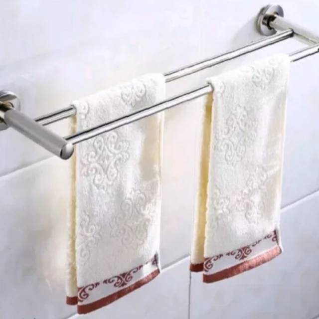 Gantungan Handuk 2 Baris Stainless steel Tinggal Pasang Good Quality
