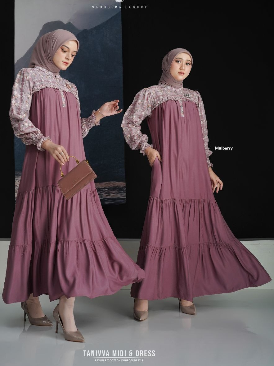TANIVVA MIDI DRESS RAYON NADHEERA LUXURY TERBARU SIMPLE DAN MEWAH