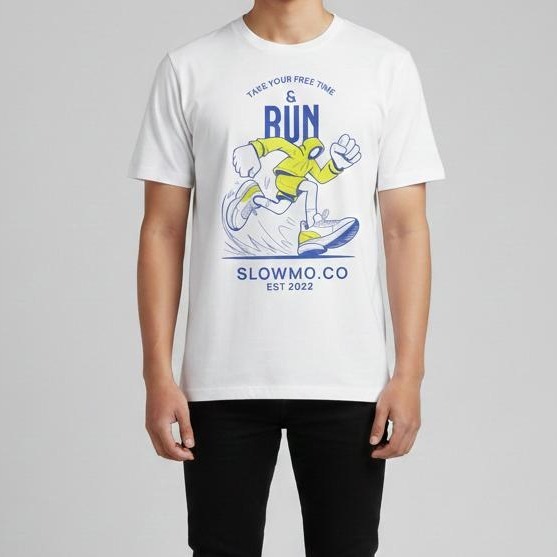 SLOW MO RUN YELLOW WHITE T SHIRT #tshirtpremium #running t shirt