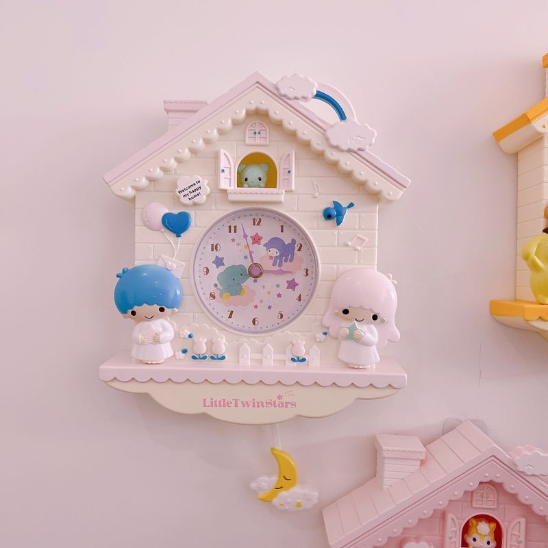 Sanrio Cute My Melody Pink Bedroom Decoration Wall Clock Decor Cinnamoroll Pom Pom Purin Hello Kitty Clock Kawaii Room Pendant