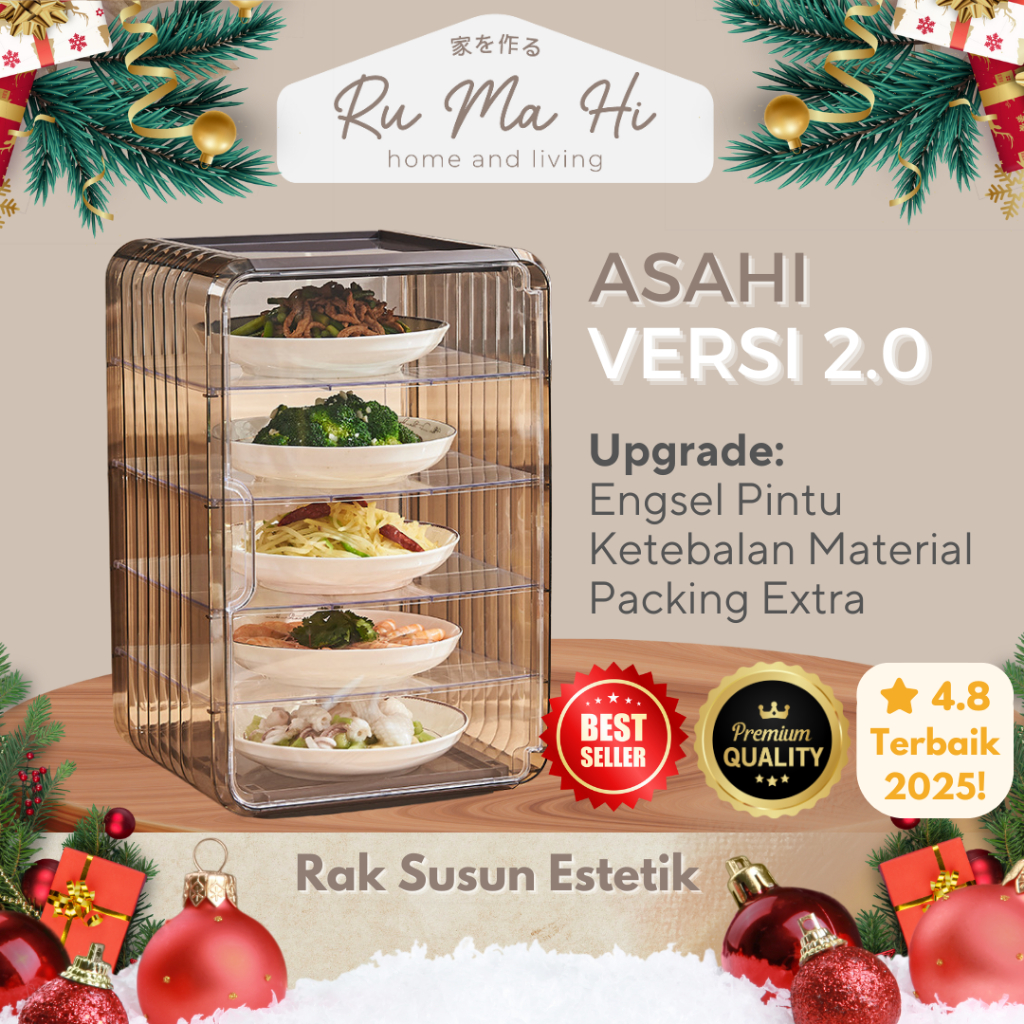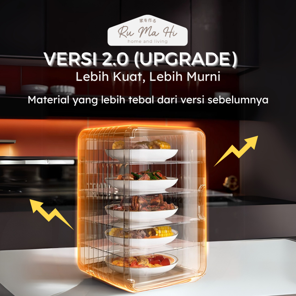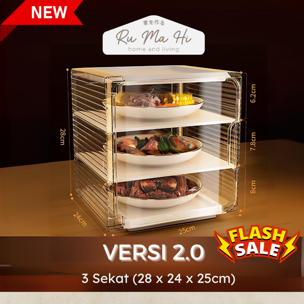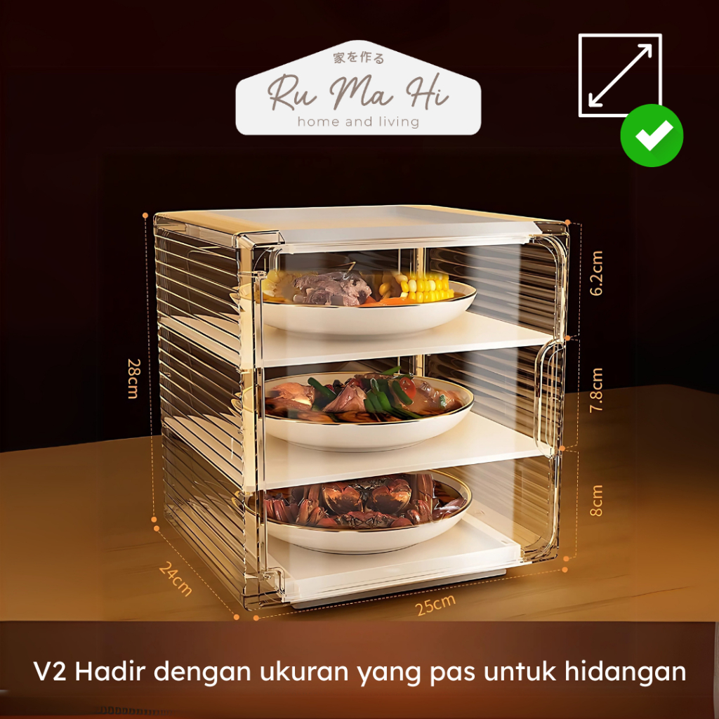 RUMAHI - ASAHI Lemari Penyimpan Lauk Tingkat Penyimpanan Makanan Food Cover Susun Tudung Saji Premium Lauk Anti Debu Lemari Tudung Saji Makanan Anti Lalat Tudung Saji Makan Serbaguna