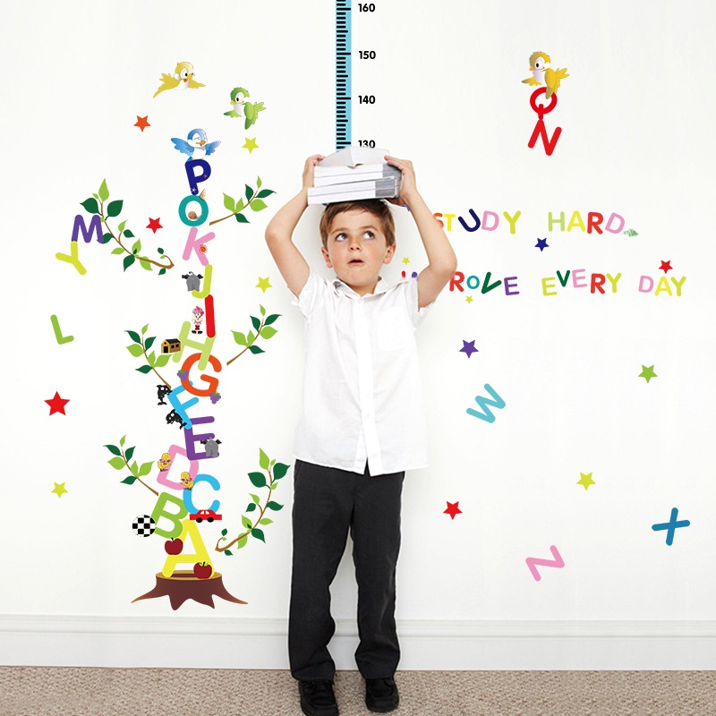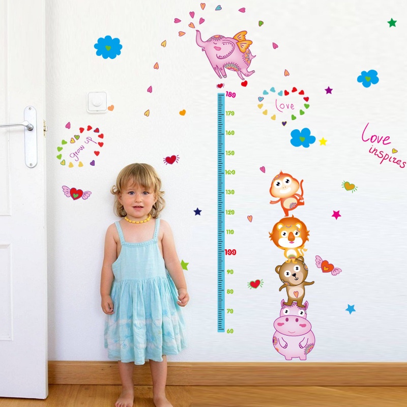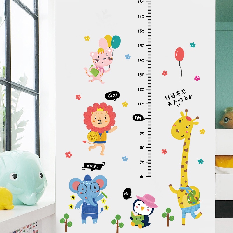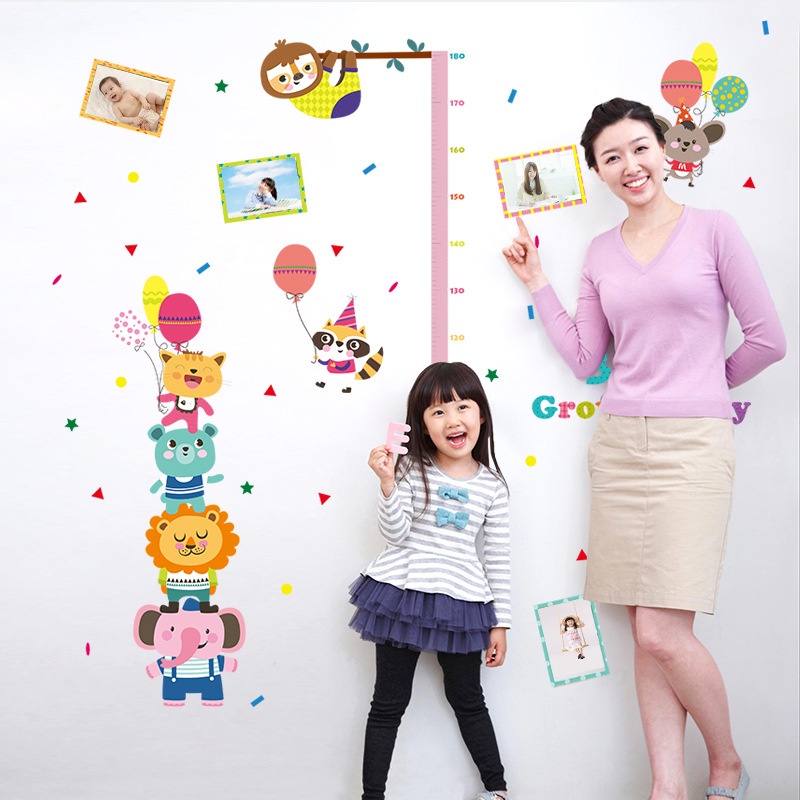 RELIZA WALL STICKER / STIKER DINDING PENGUKUR TINGGI BADAN ANAK HEWAN GROW UP ANIMAL