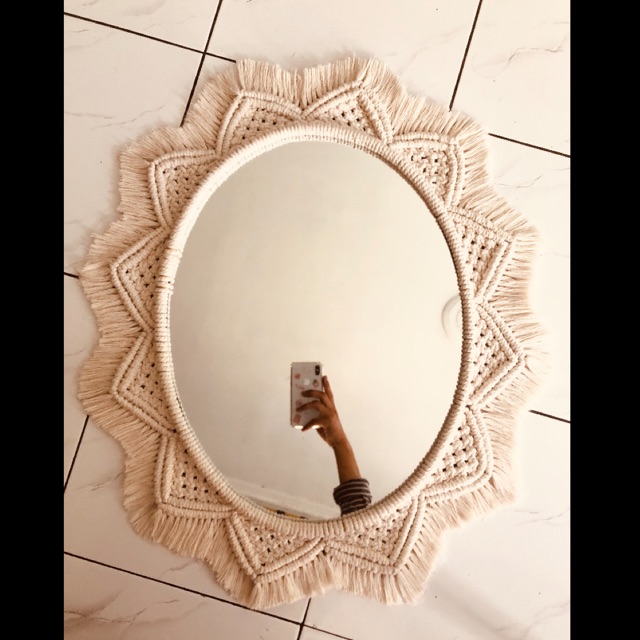 Cermin Macrame Oval || Mirror vintage Classic Aesthetic Home Decor Wall Hanging