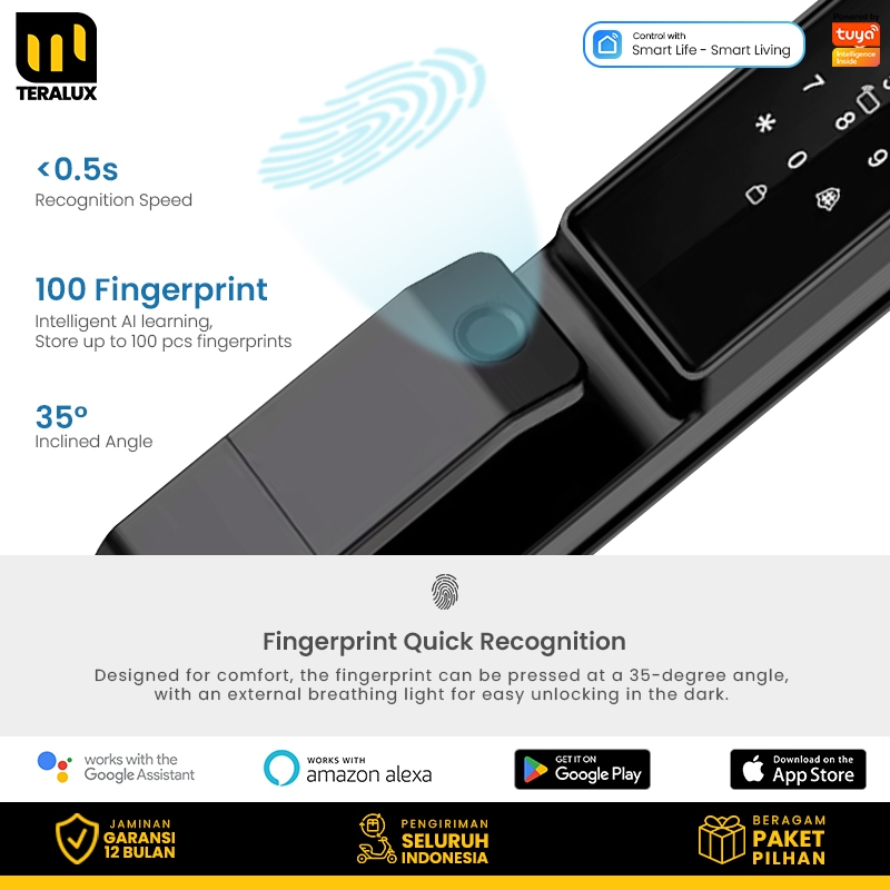 TERALUX Smart Door Lock Fingerprint With Camera Face Recognition Doorbell