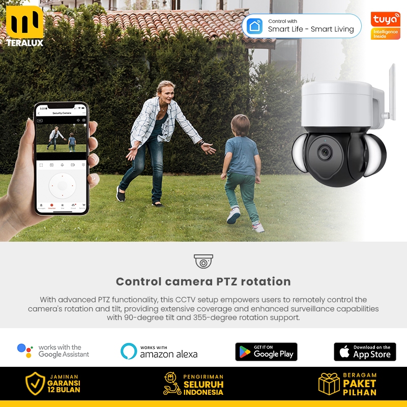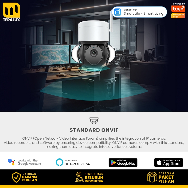 TERALUX Smart Home Security Floodlight Camera CCTV Outdoor ONVIF Motion Detection Tuya Smartlife