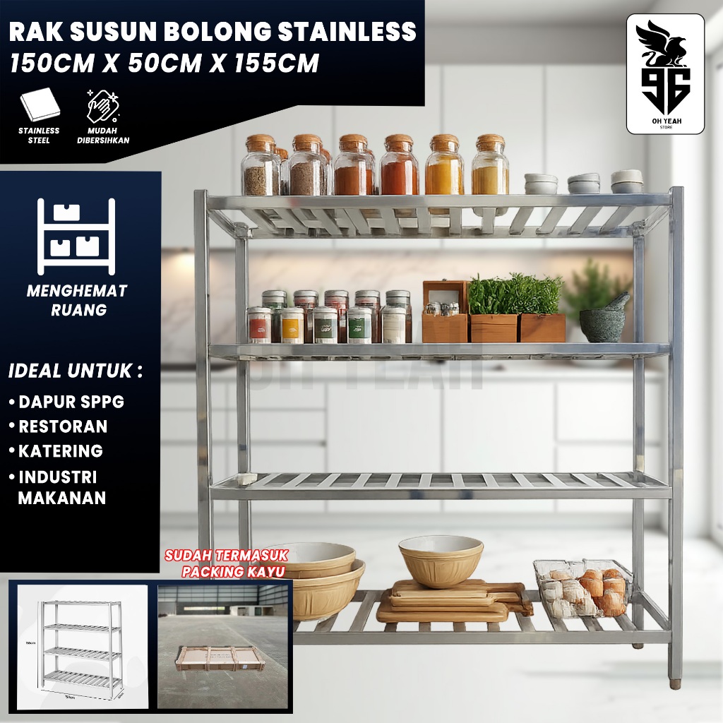 [Include Packing Kayu] Rak Pan 4 Susun Berlubang Stainless Steel Dapur MBG SPPG | Rak Laboratorium Rak Susun Bolong Anti Karat Kokoh Awet | Rak Pengolah Makanan Higienis Investasi Dapur Profesional | Rak Gudang Stok Rak Minimalis Kuat Kapasitas Besar