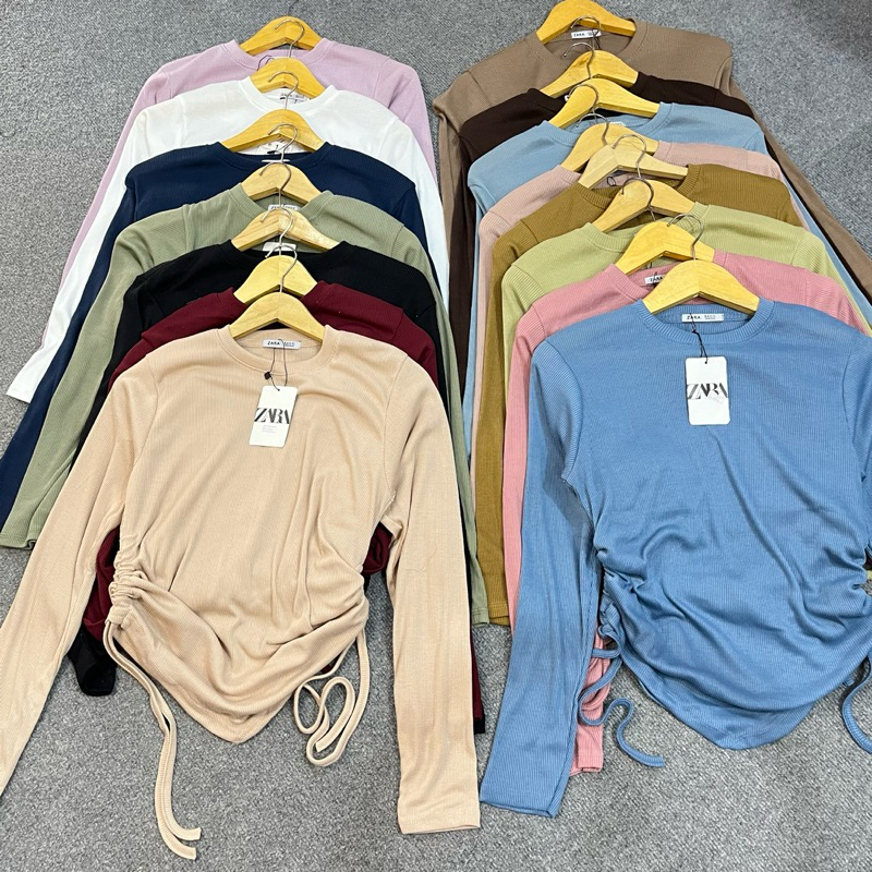 kaos lengan panjang serut kanan kiri baju serut samping crop top serut baju serut lengan panjang