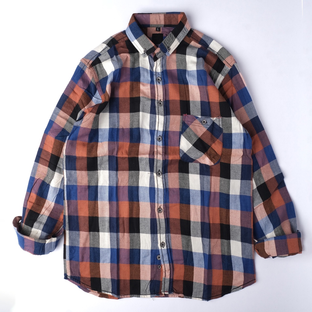 AETDLA Flanel Burgundy-Black Blue Lengan Panjang