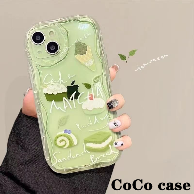Casing ponsel kue matcha iPhone 11 12 Case ponsel yang indah 13 14 15 Plus Pro Max Softcase Macaron X XR XS Max 6 6s 7 8 Plus Case ponsel transparan