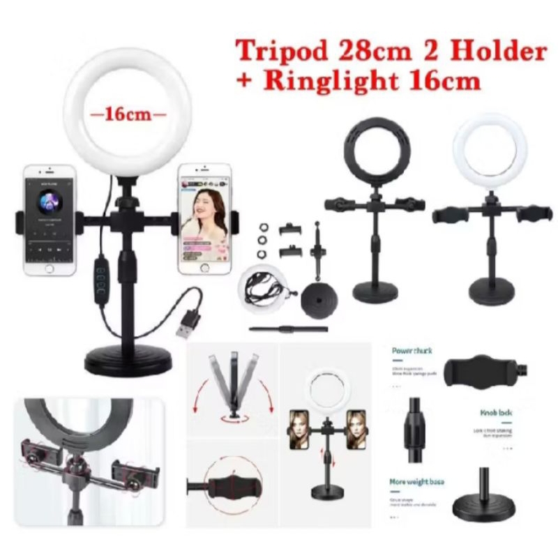 TNW Ring light 16cm+Tripod +2 Holder HP Ring light Tripod Mini Stand HP Live stream Selfie Make up
