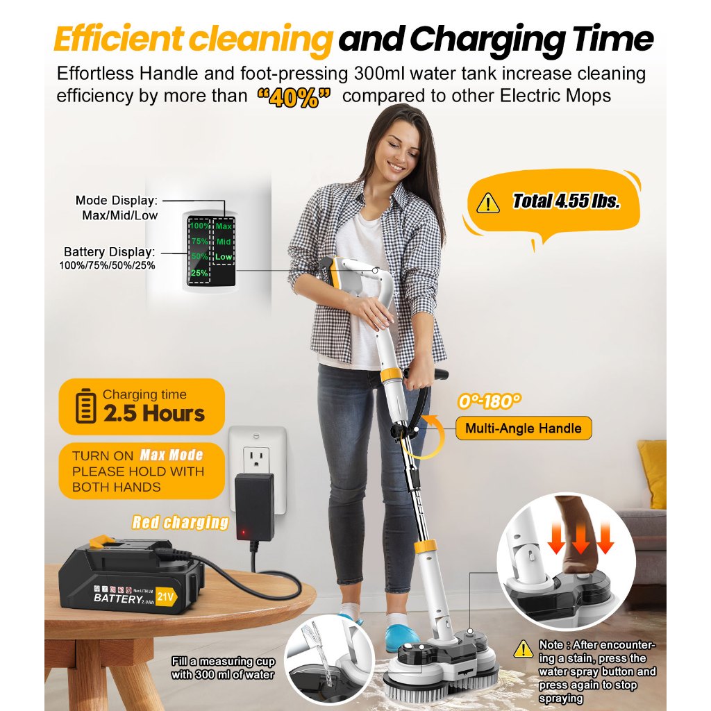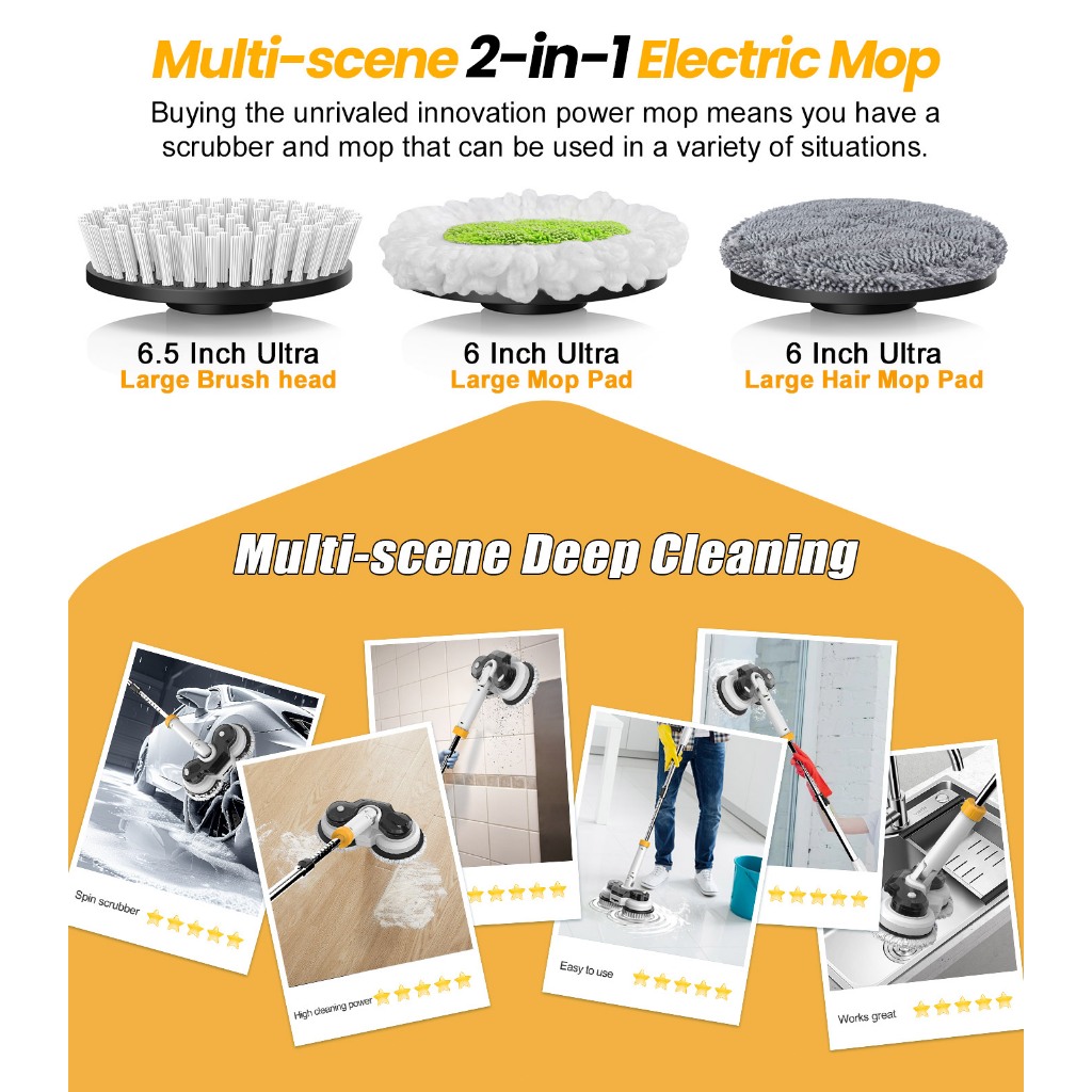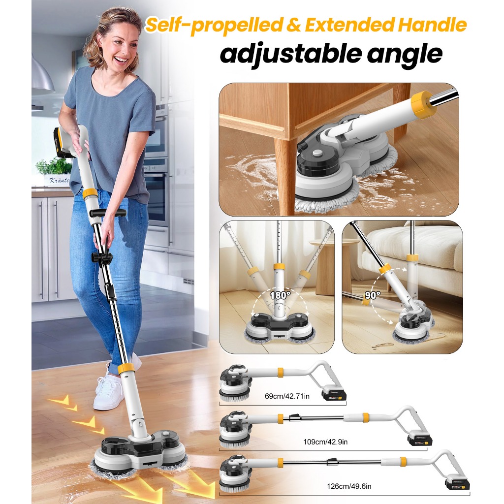 QIMEDO Cordless Electric Mop Karpet Sikat Pembersih Listrik Toilet Sikat Kamar Mandi 1 Set