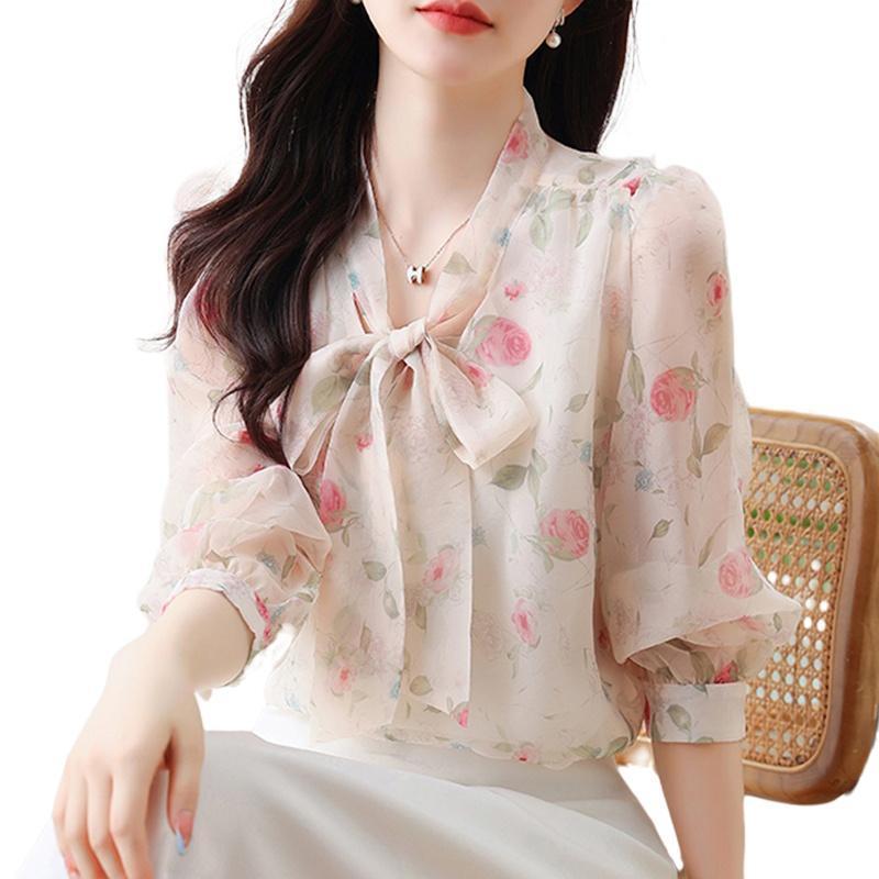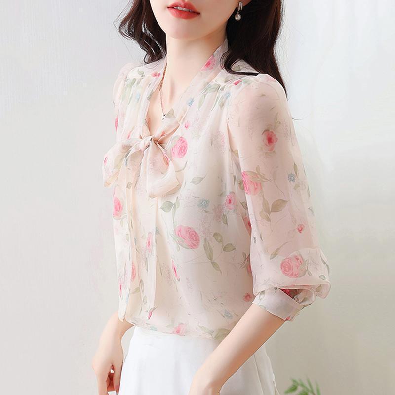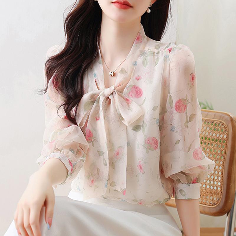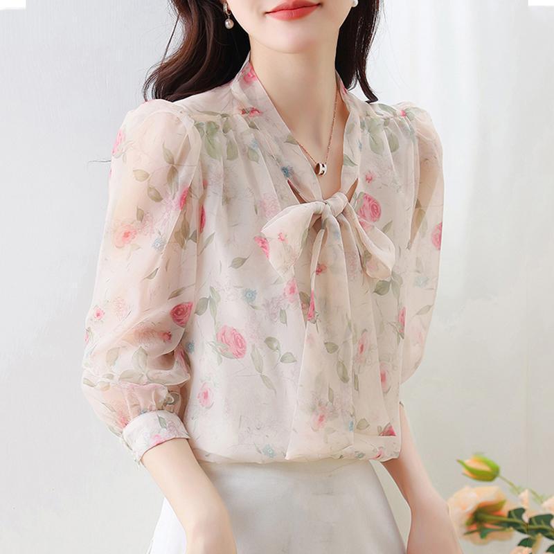 Chiffon Shirt Mama Gaya Asing Fashion Kemeja Cantik Lengan Panjang Top
