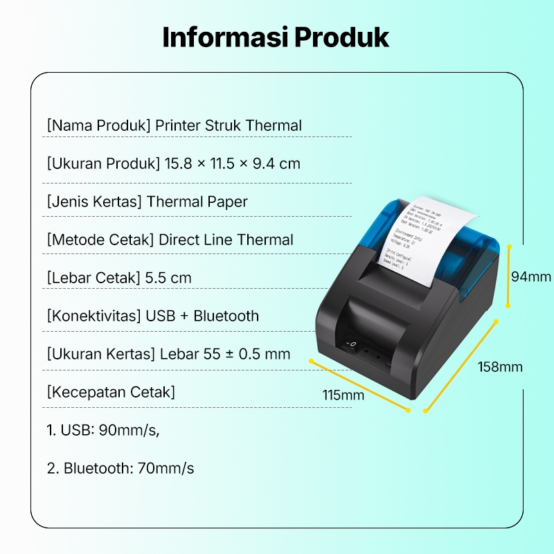 Printer Thermal Bluetooth Portable 58mm USB PRINTER KASIR Receipt Printer untuk Toko, Restoran, PPOB