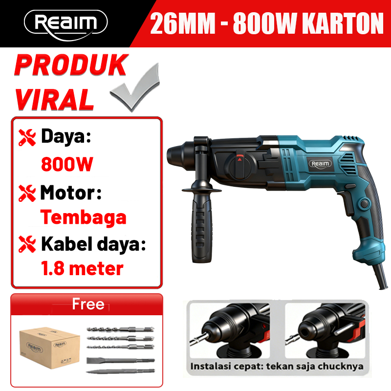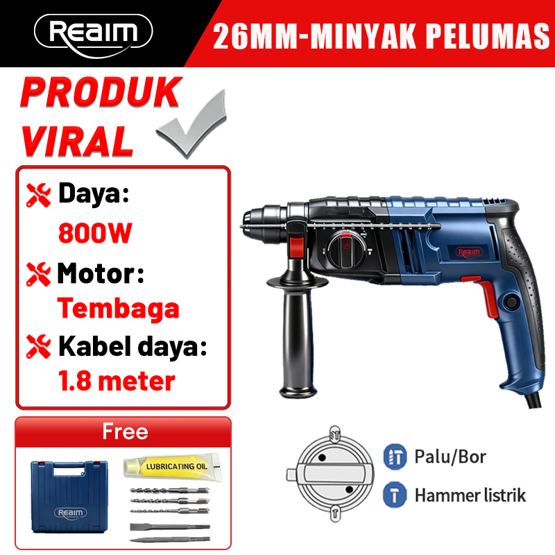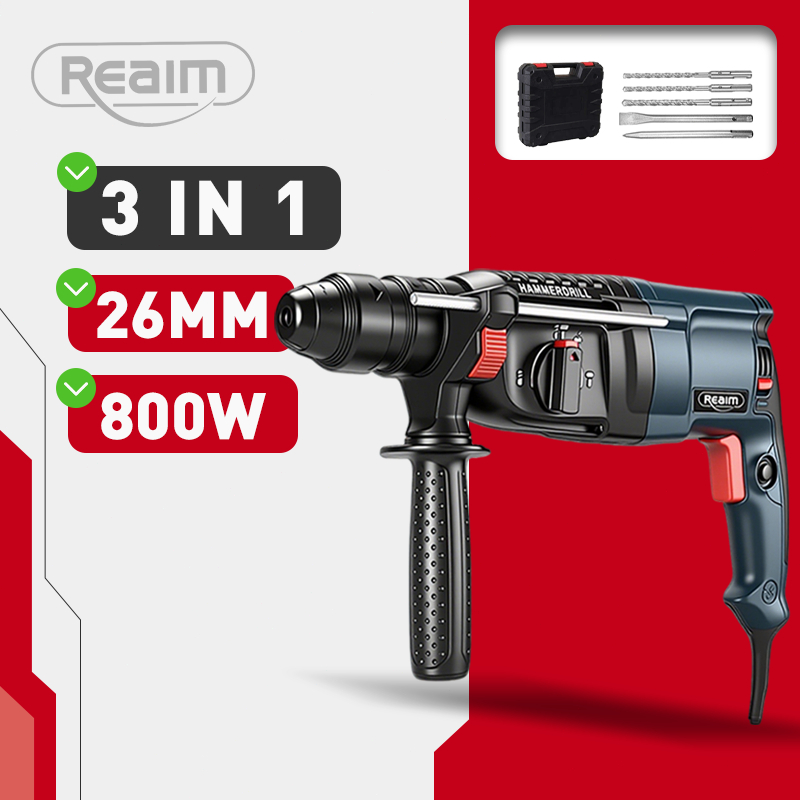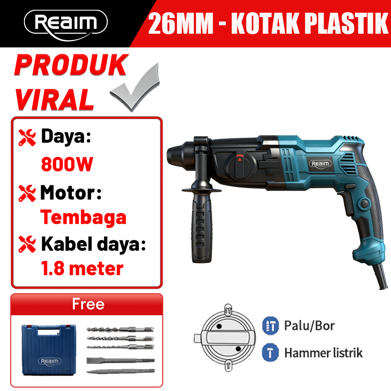 Reaim Hammer Drill 26MM Mesin Bor Bobok Beton 3In1 Palu Besi Baja Asli Palu Besi Palu Multifungsi