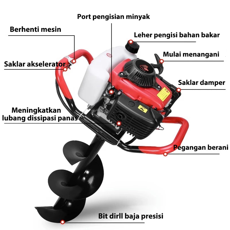 Reaim Mesin Bor Gali Tanah 52 CC Earth Auger Drill Earth Auger Alat Penggali Lubang Tanah Engine Drill Bensin Mesin Bor Tanah