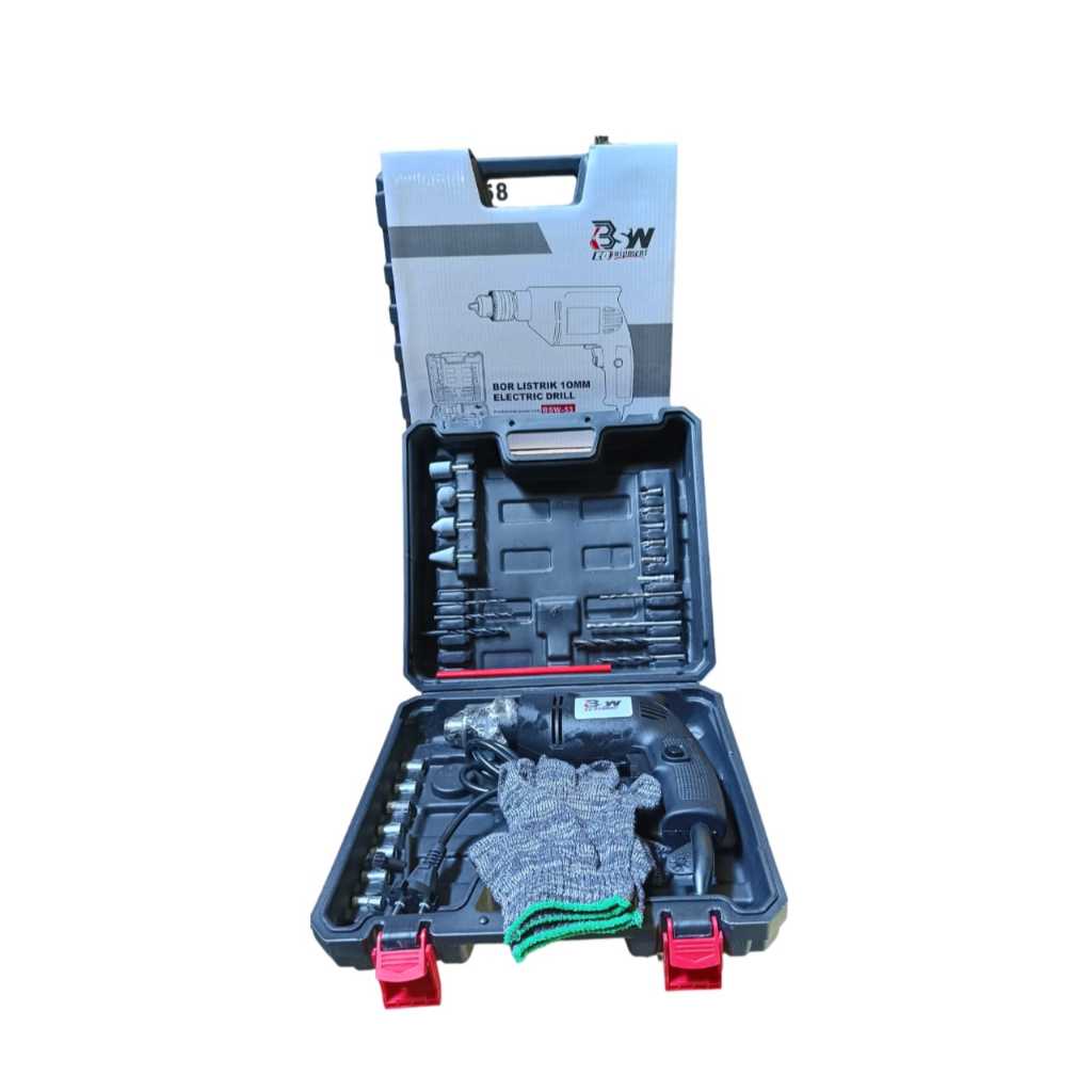 TERLARIS BOR BOLAK BALIK SET KOPER !!! bor bsw 10mm set box Mesin Bor Tangan Listrik Set perlengkapan dan tollnya BO