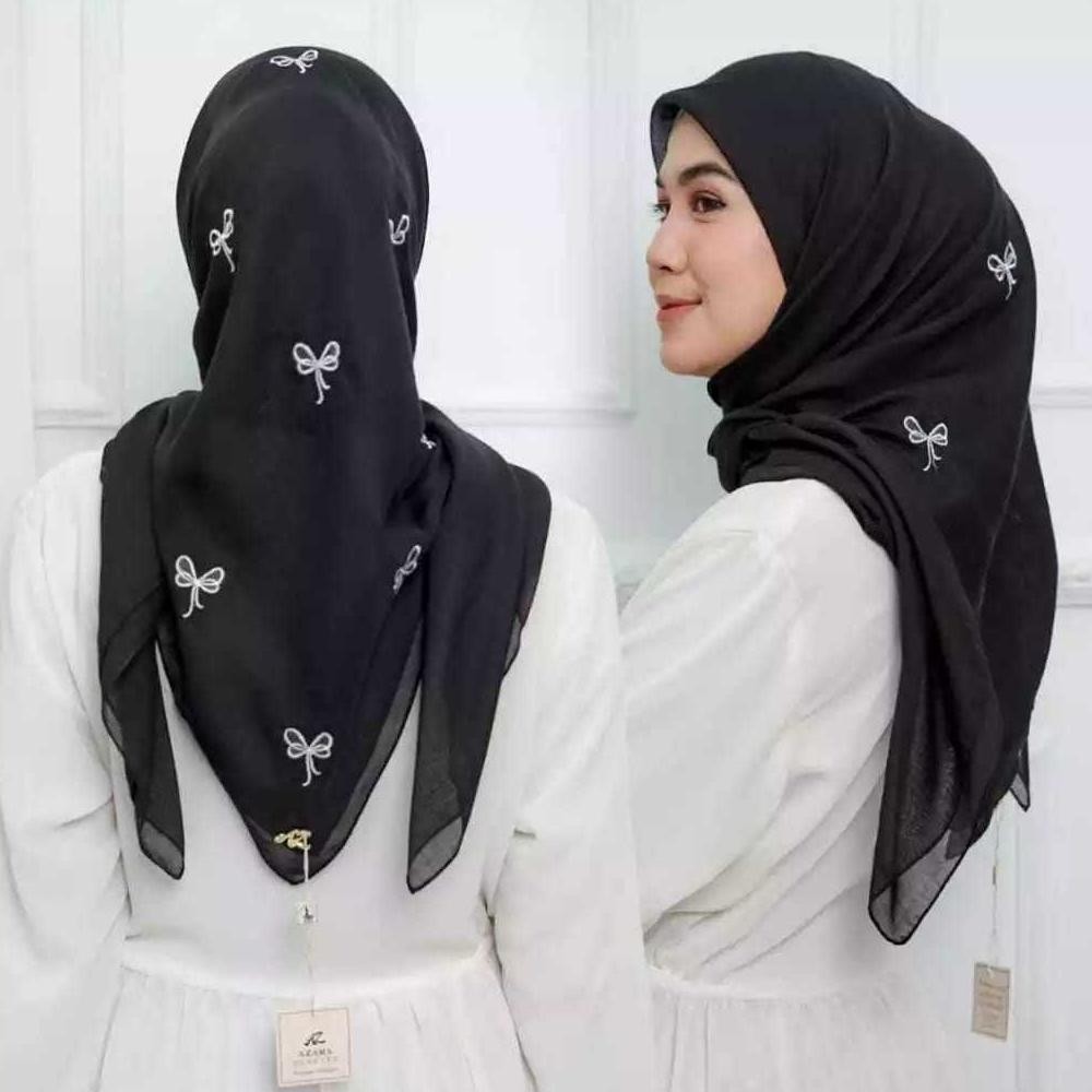 Keunggulan Hijab Segi Empat Paris Bordir Pita Kecil Premium Tepi Jahit Qc Pass