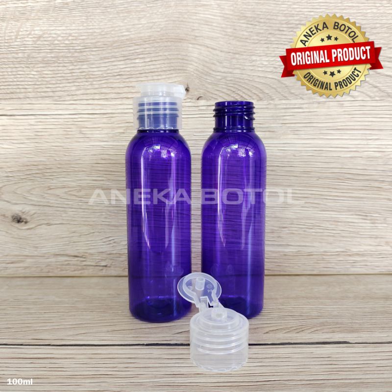 BOTOL PET 100 ML UNGU TUTUP FLIPTOP JAMUR WARNA / BOTOL TONER