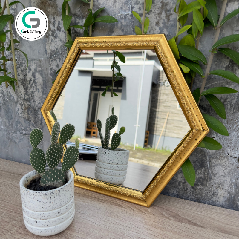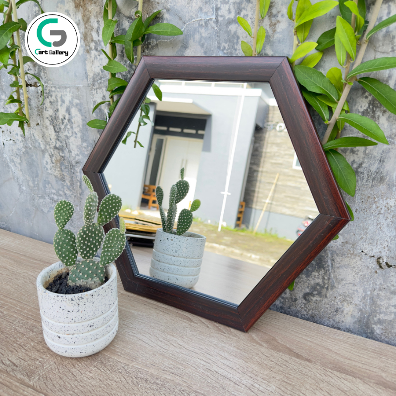 Cermin Kaca Rias Dinding SEGIENAM Kamar Mandi Tidur Dekor Penghias Kamar Aesthetic Besar Hias Mirror Minimalis Segi 6