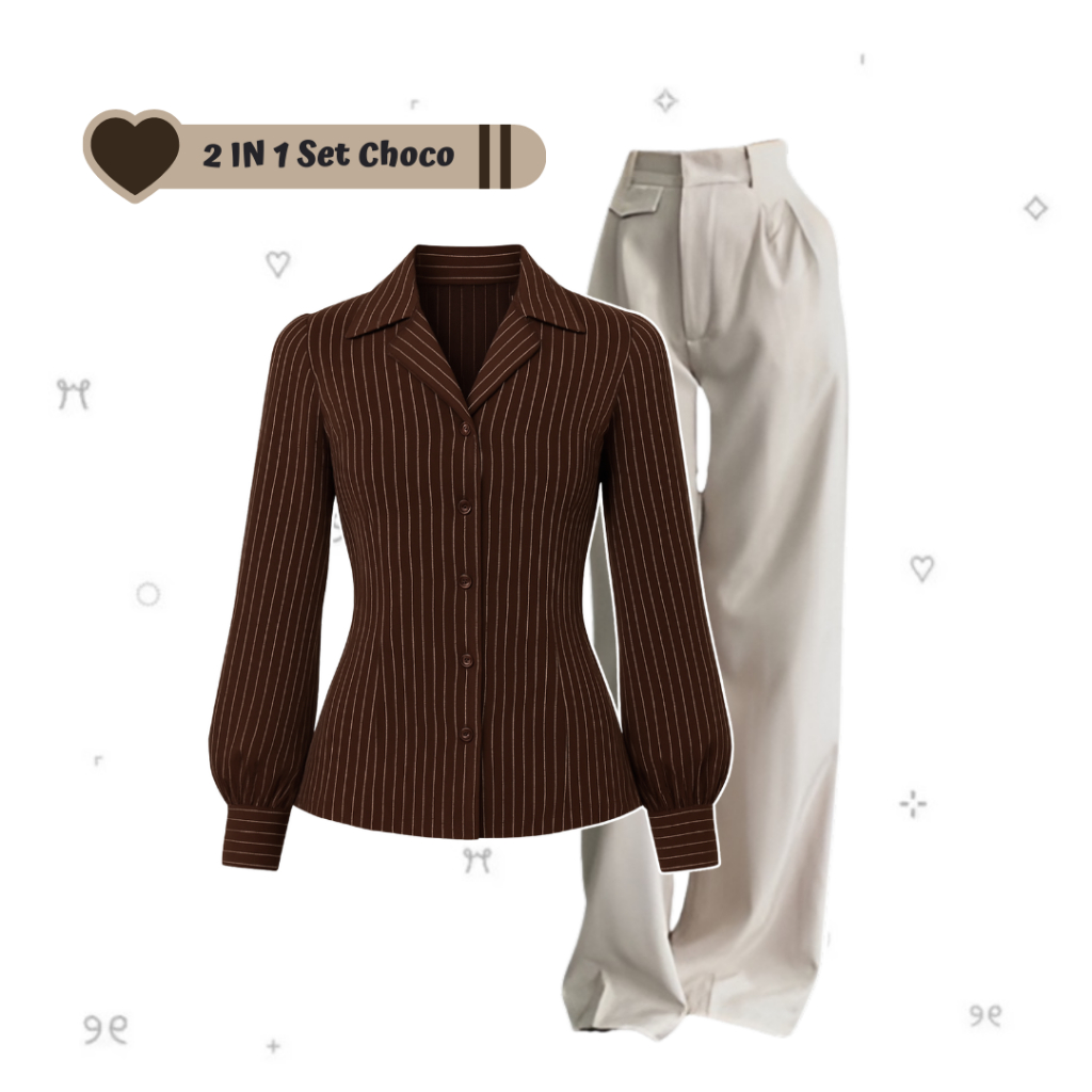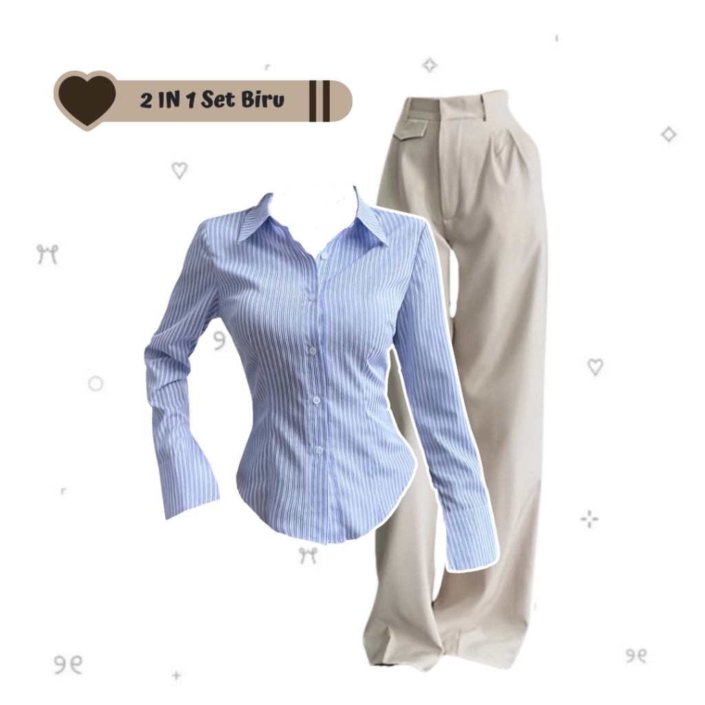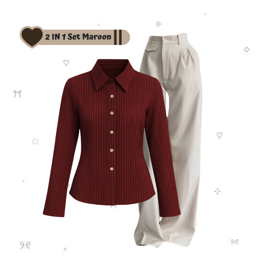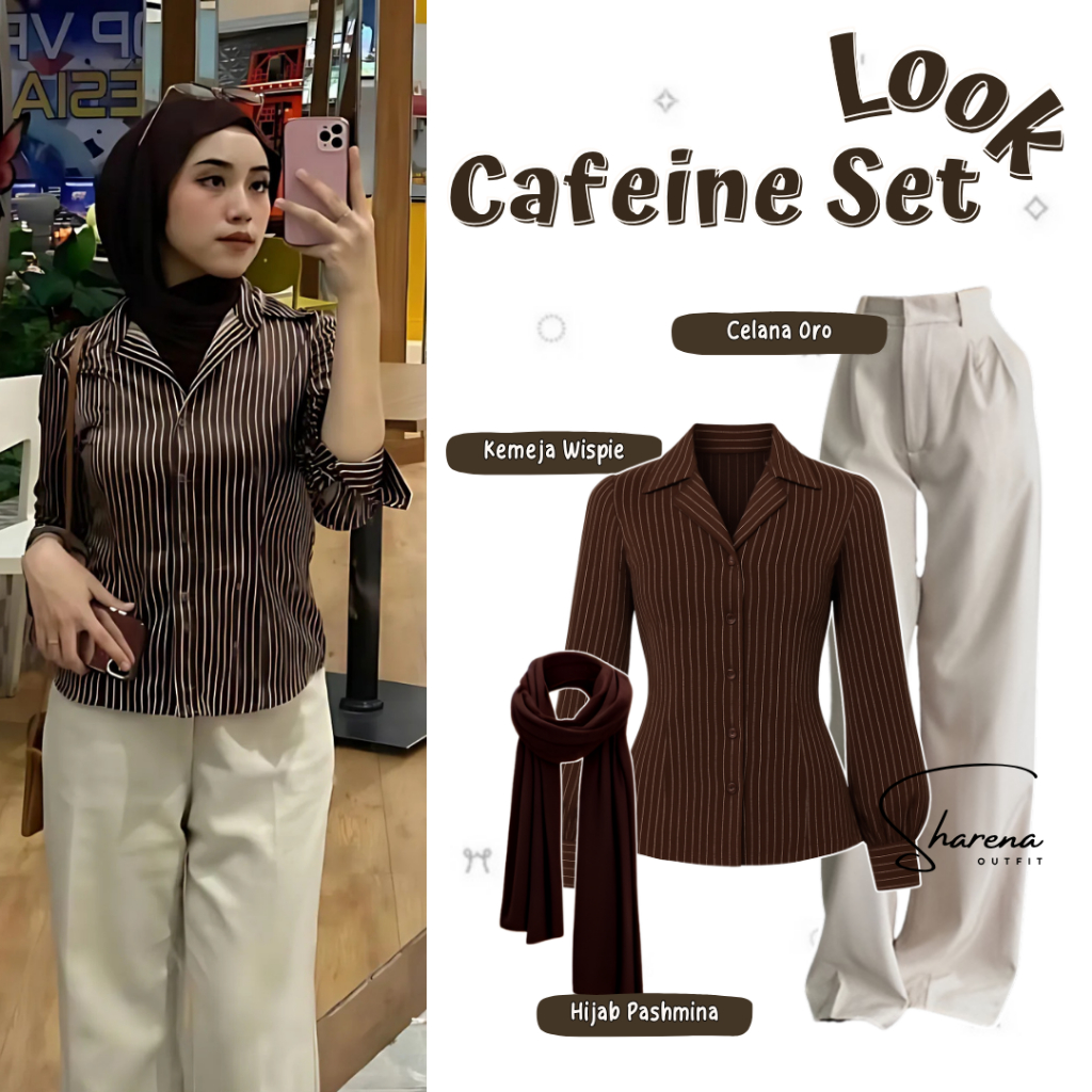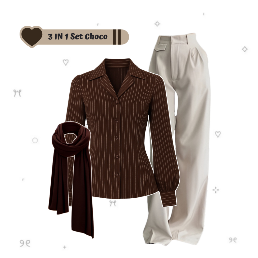sharenaoutfit - 3 IN 1 One Set Hijab Korean Outfit Style Remaja Kekinian Outfit Kemeja Wispie Salur Outfit Terbaru (Kemeja Salur Wispie + Celana Oro + Hijab Pashmina) - SET AE285