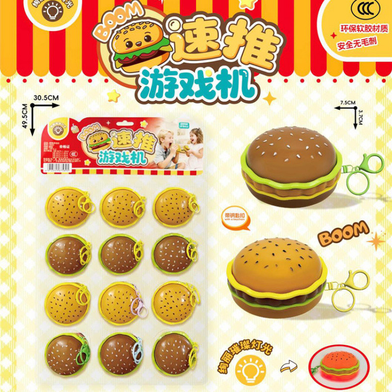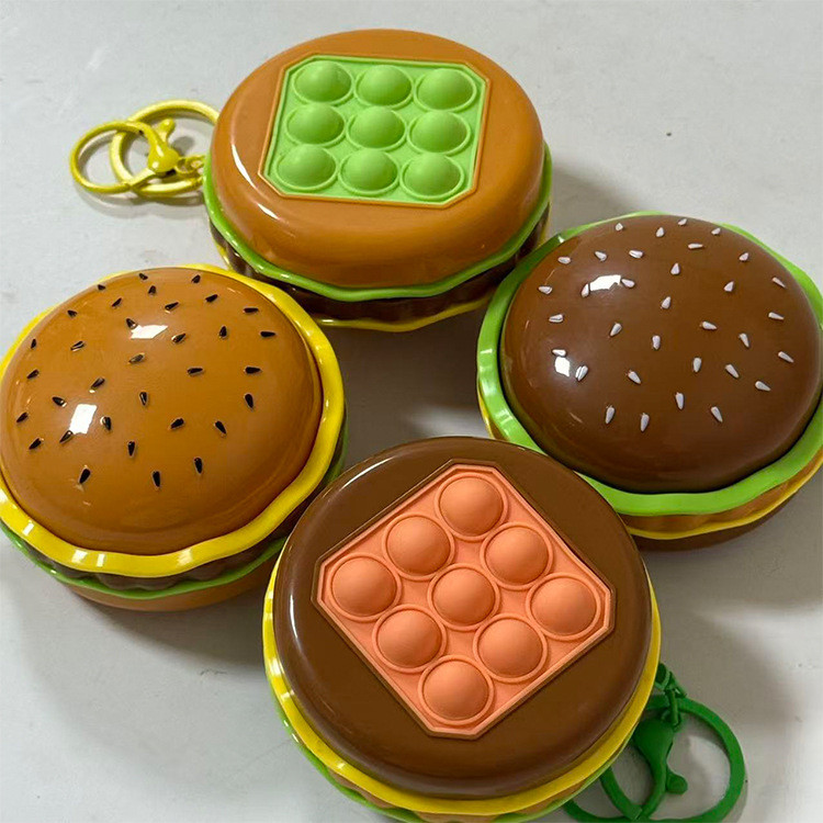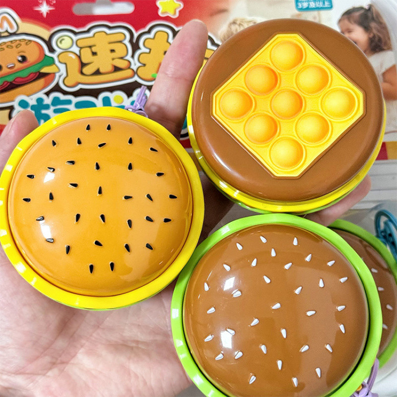 Mesin Permainan Dorong Hamburger Cepat/Tas Sekolah Gantungan Penghilang Stres Trendy/Mainan Penghilang Stres Fidget