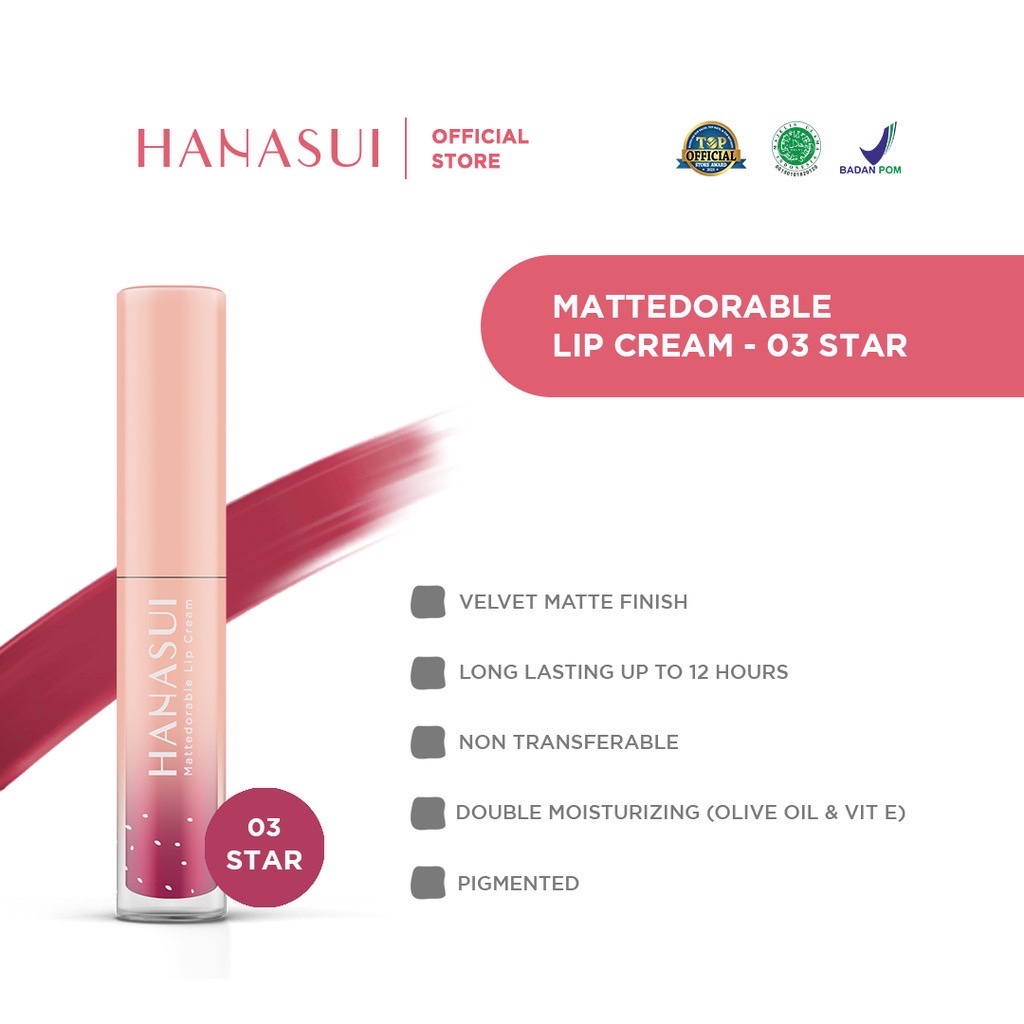 HANASUI Mattedorable Lip Cream Indonesia / Boba Gentle Cleanser Power Essence Toner Serum Day Night Cream Spot Gel Sleeping Mud Peel Off Mask Masker Body Lotion Spa Exfoliating Gel Bar Soap / Men Naturgo Flawless Glow Acne Treatment Mineral Gold Paket Oil