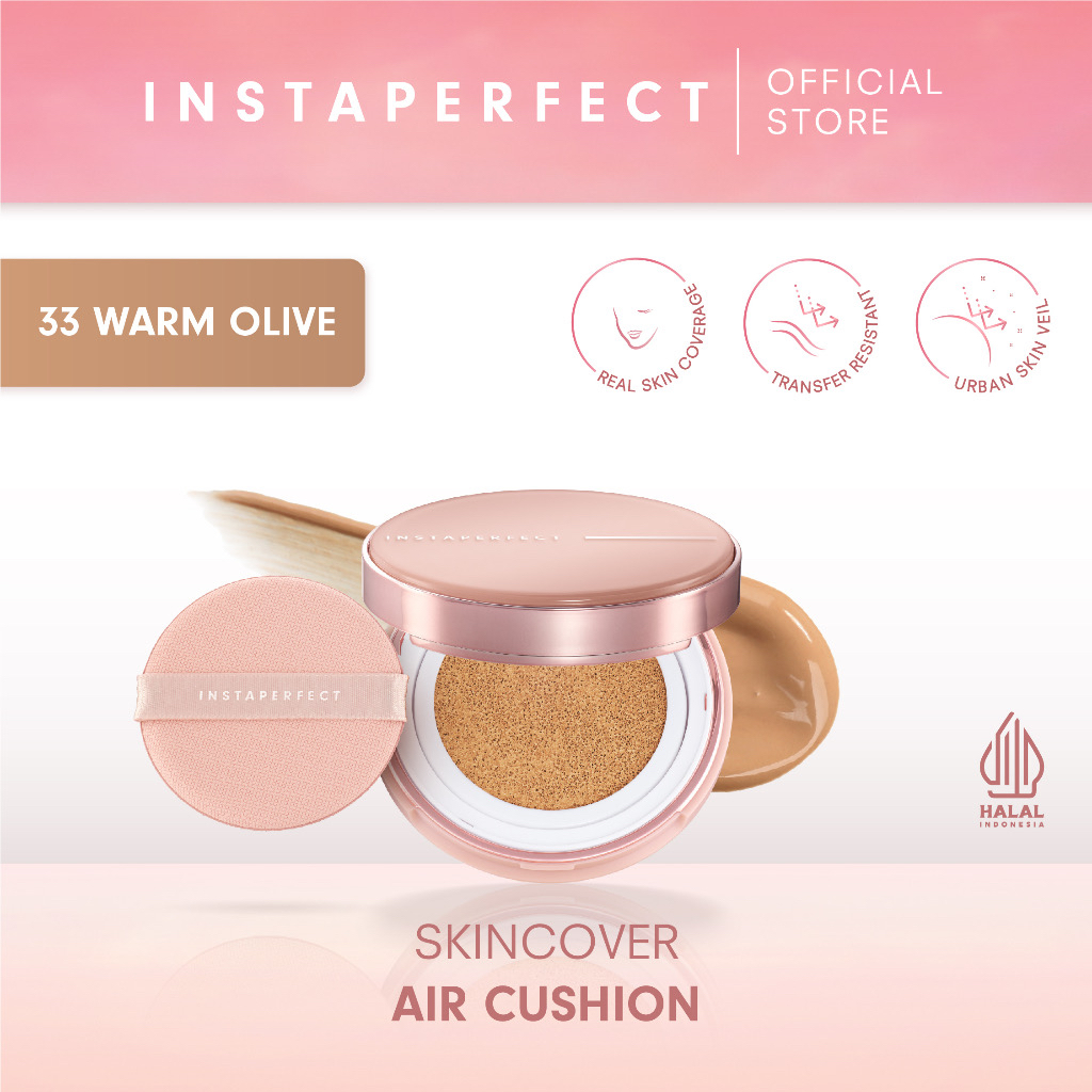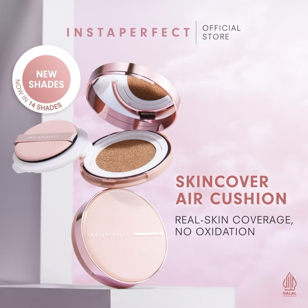 INSTAPERFECT Skincover Air Cushion Indonesia / Cushion Wajah 11g / Real Skin Covarage / Transfer Resistant / Urban Skin Level / Buildable / SPF 50 PA++++ / Full Set Refill Shade 11 22 32 33 43 52 / Cosmetic Face Makeup Series / Compact Powder Bedak Padat