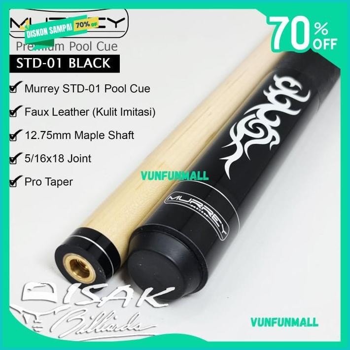 MURREY STD-1 - MAPLE POOL BILLIARD CUE STICK - STIK BILIAR - HITAM BAHAN BERKUALITAS !!