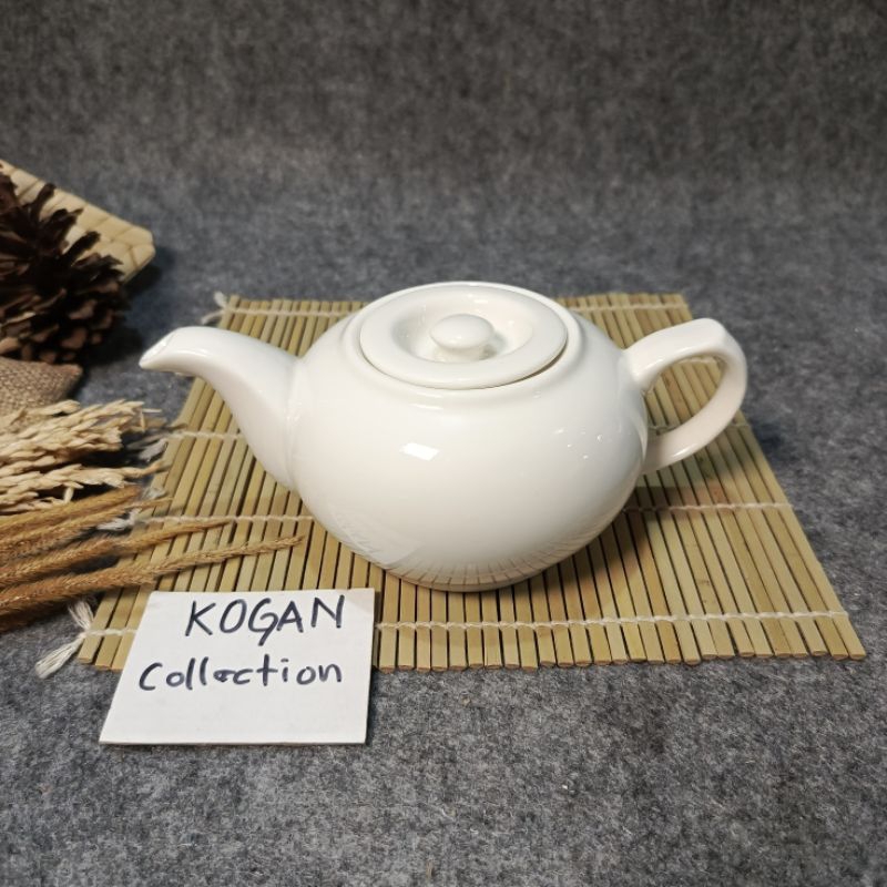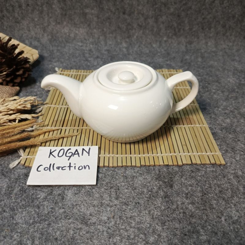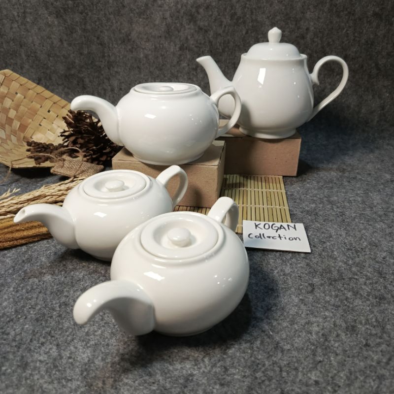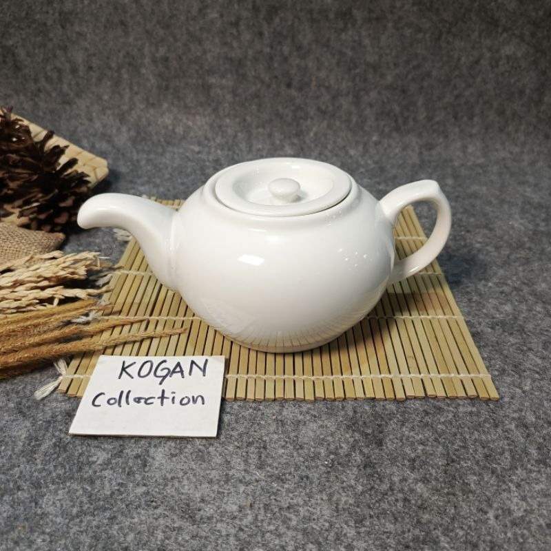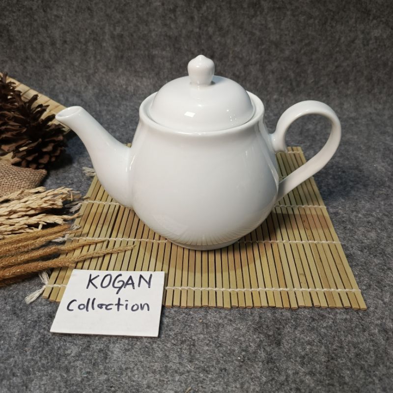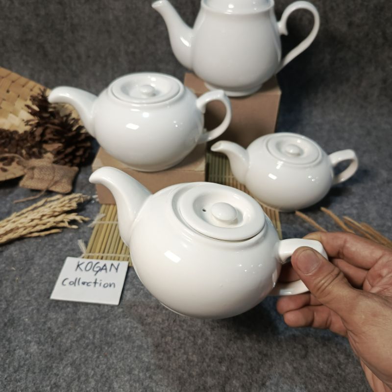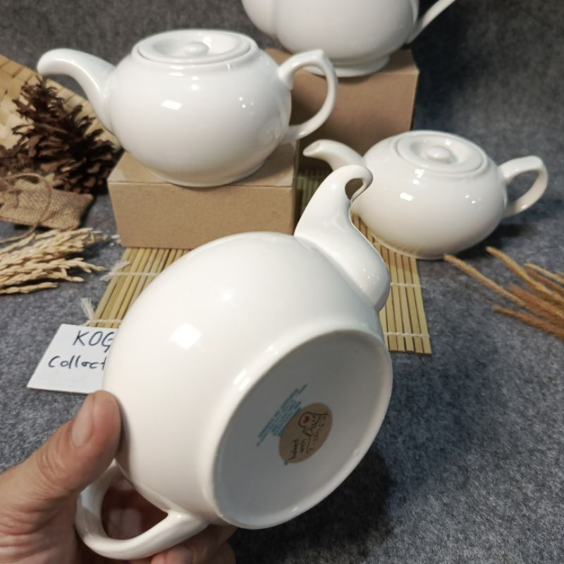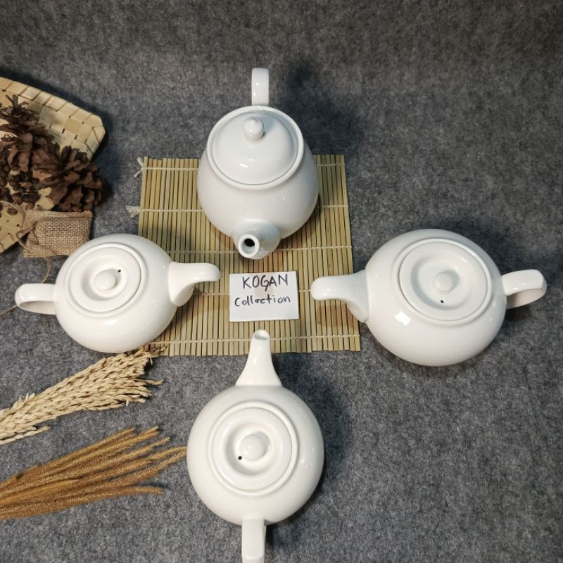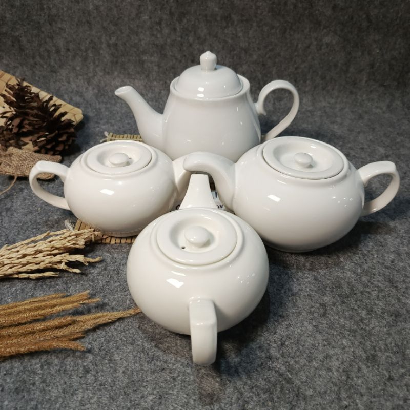 TEA POT KERAMIK PORSELEN CGA-01, TEKO TEH KERAMIK 0.7L-1L, MOTIF PUTIH PORSELEN KITCHENWARE Cangkir