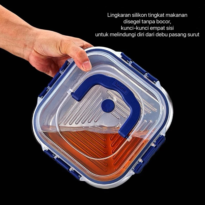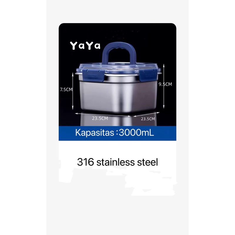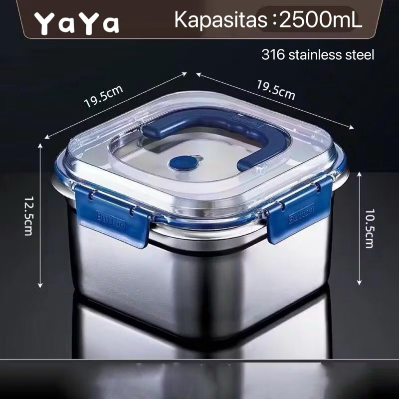 Yaya LB268 Kotak tertutup portabel berbahan baja tahan karat, seri biru, beragam pilihan kapasitas, bahan baja tahan karat tebal, kuat dan tahan lama, penyegelan baik, tidak mudah bocor.
