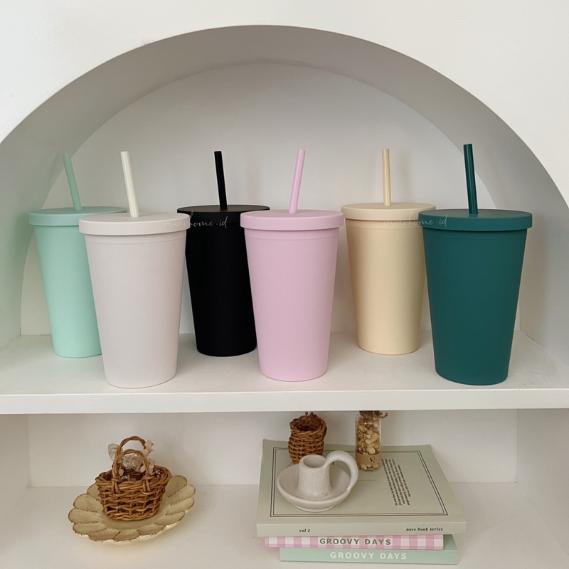 [MINIHOME] NORE Tumbler 500ml Tumbler Minuman Include Sedotan Botol Minum Warna Pastel Aesthetic